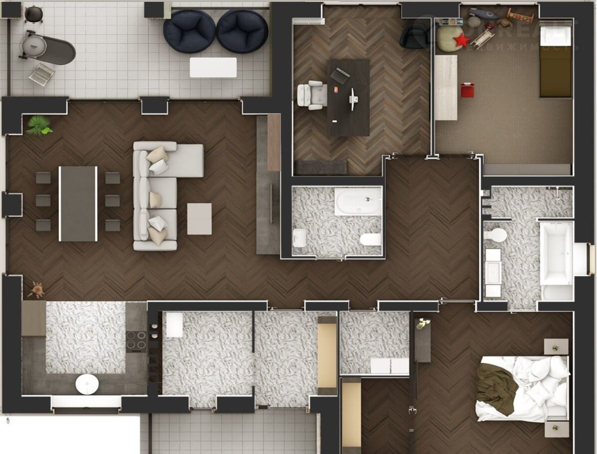 ✅ чистовая отдeлкa (White Вох) с полной разводкой всех коммуникаций (сантехника и электрика)