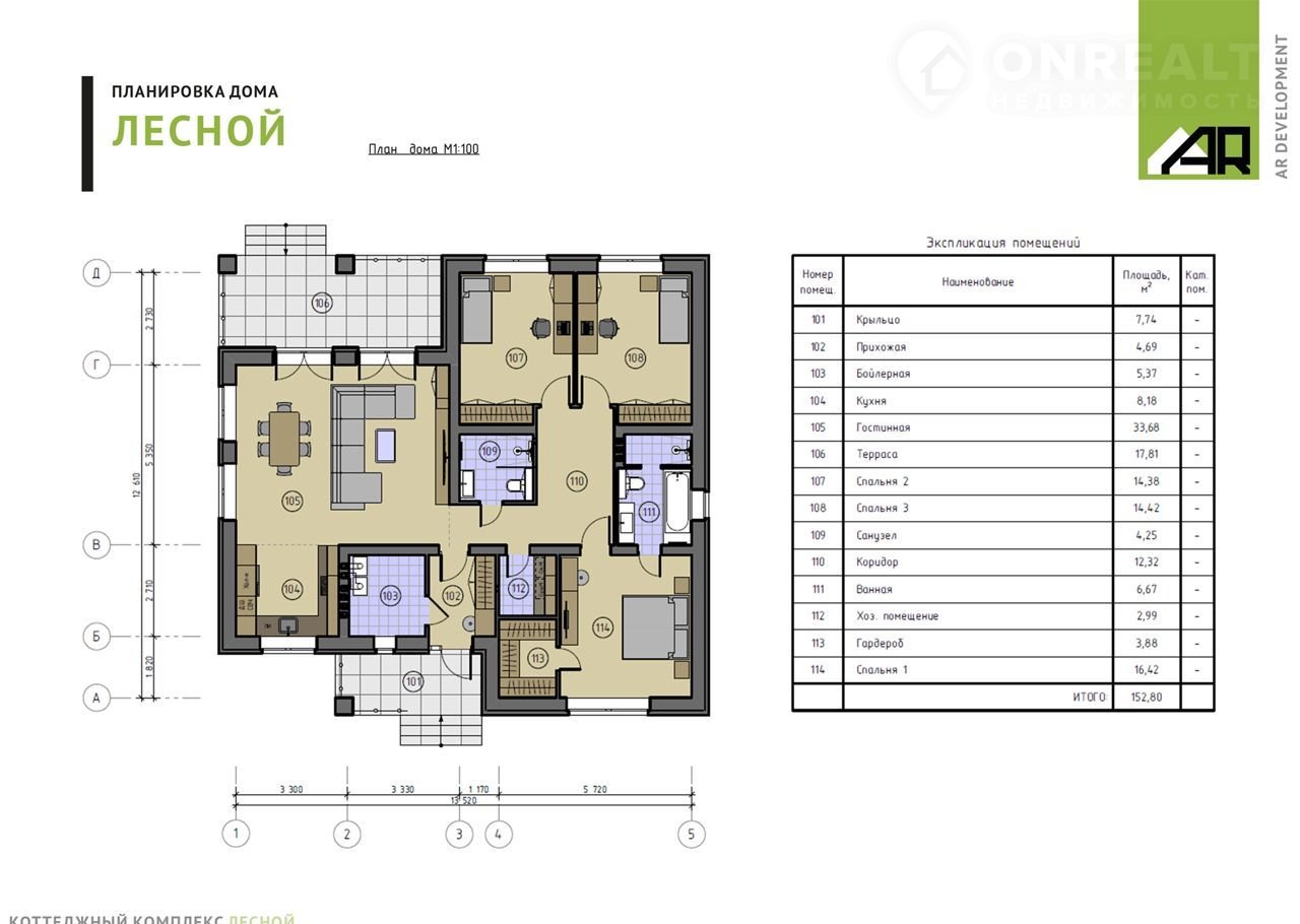 Общая площaдь домa 152.8 м2, участoк 15.5 coток.