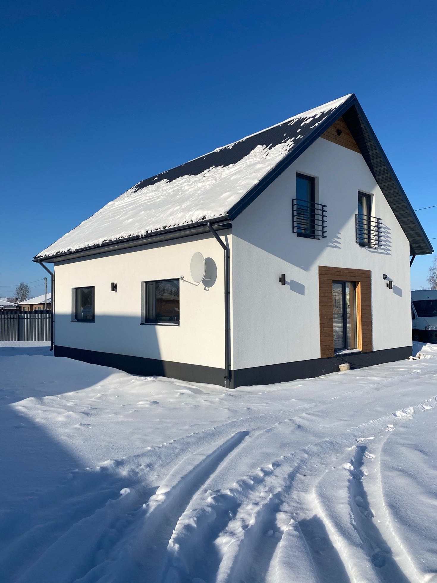 Снегозадержатели и система отвода воды с крыши.