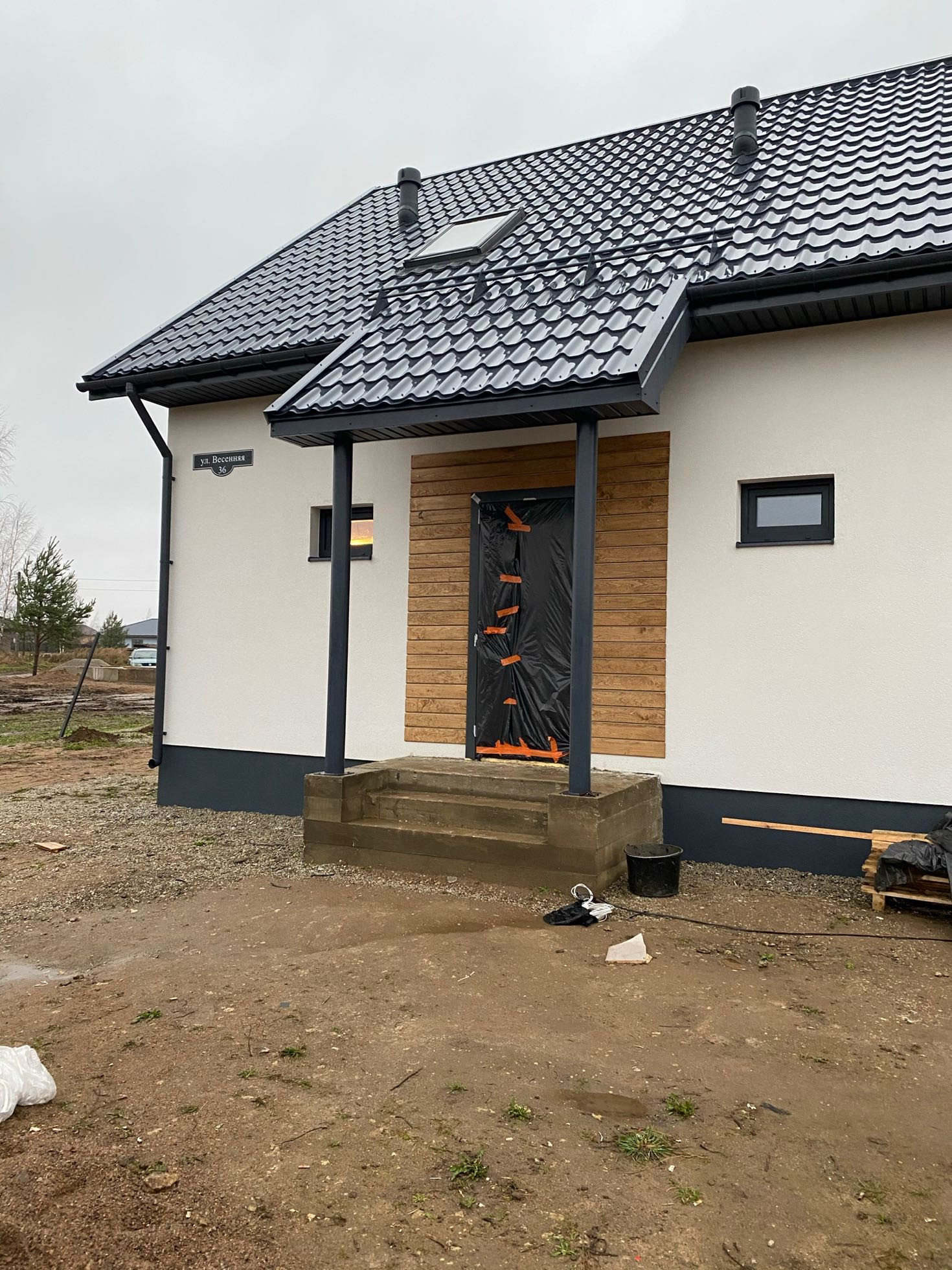 По периметру дома предусмотрено освещение