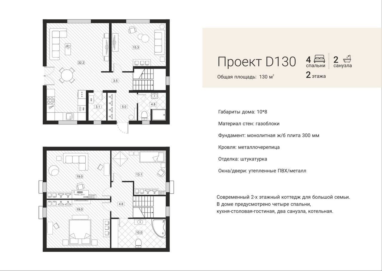 Общая площадь 130 м2