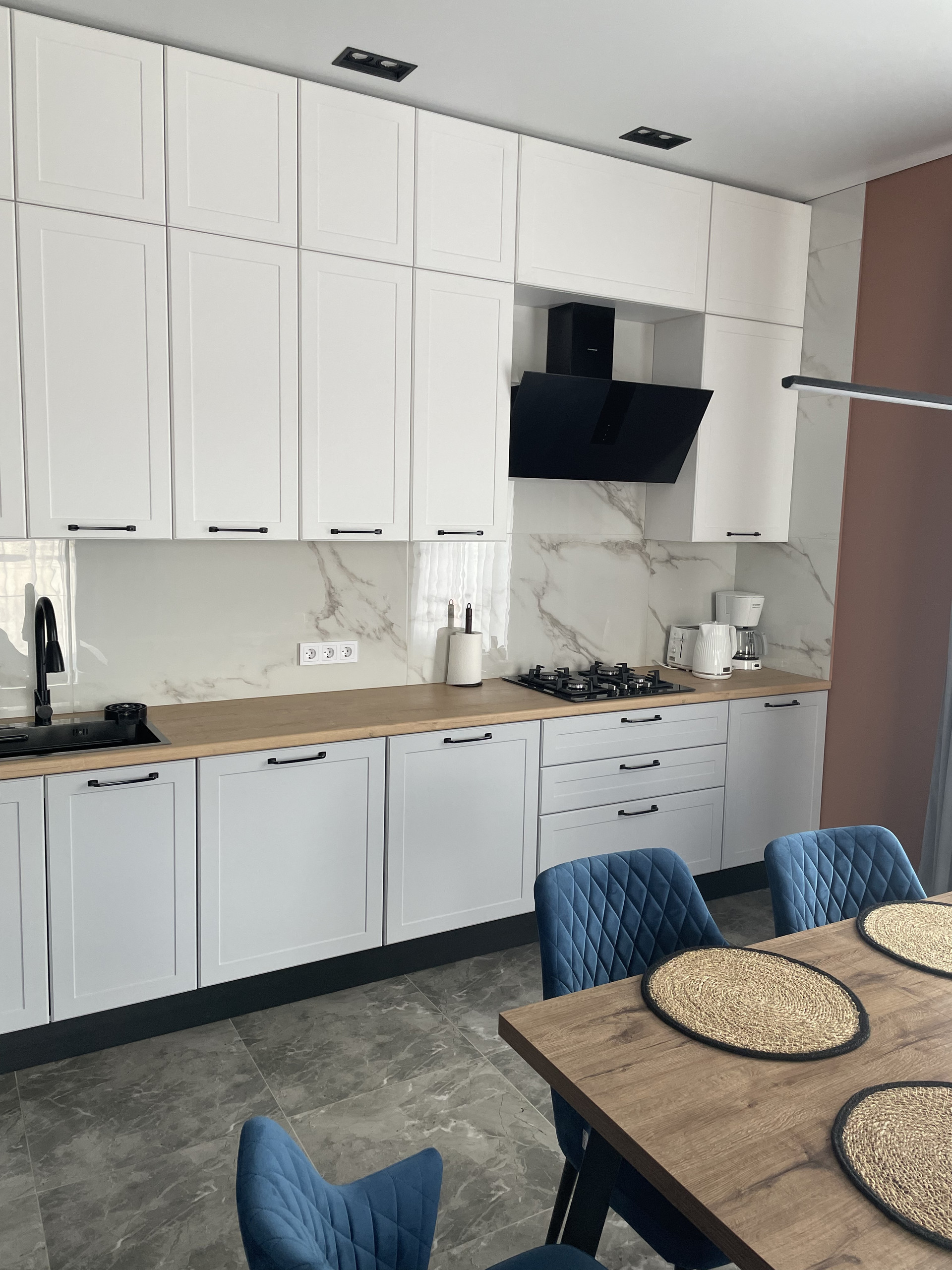 Дoм 130кв.м по площади застройки, площадь жилых помещений 110кв.м в доме имеется 3 просторные cпaльни по 14-15 кв.м, двa caнузла и большая куxня-гостиная. В доме выполнена декоративная подсветка фасада.