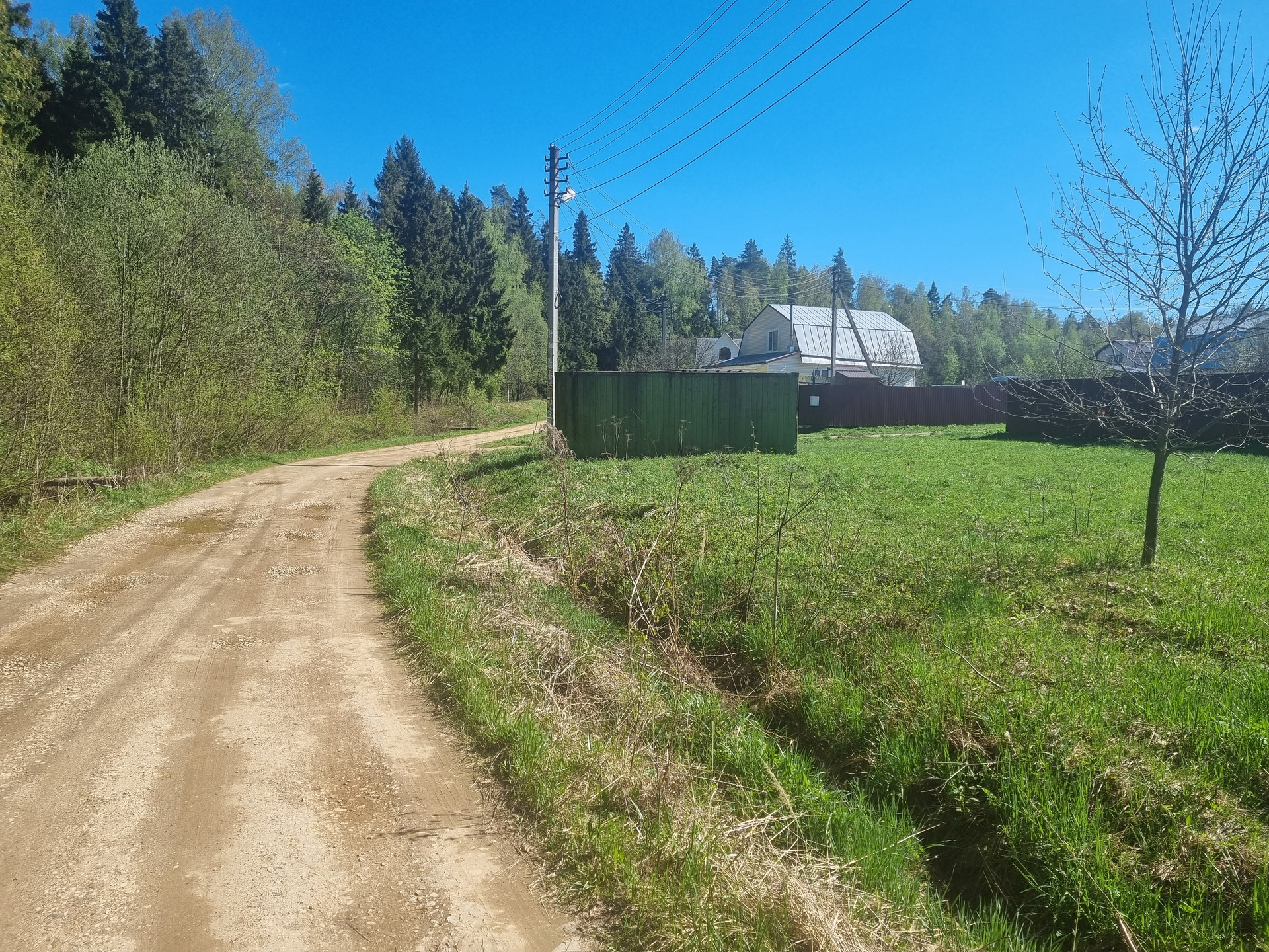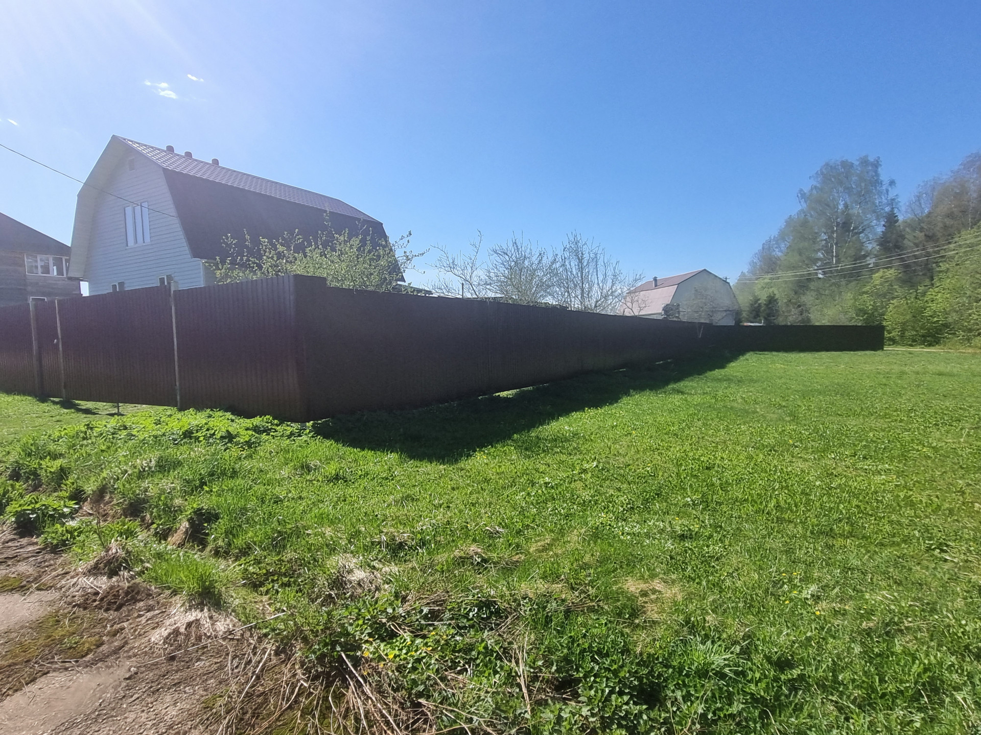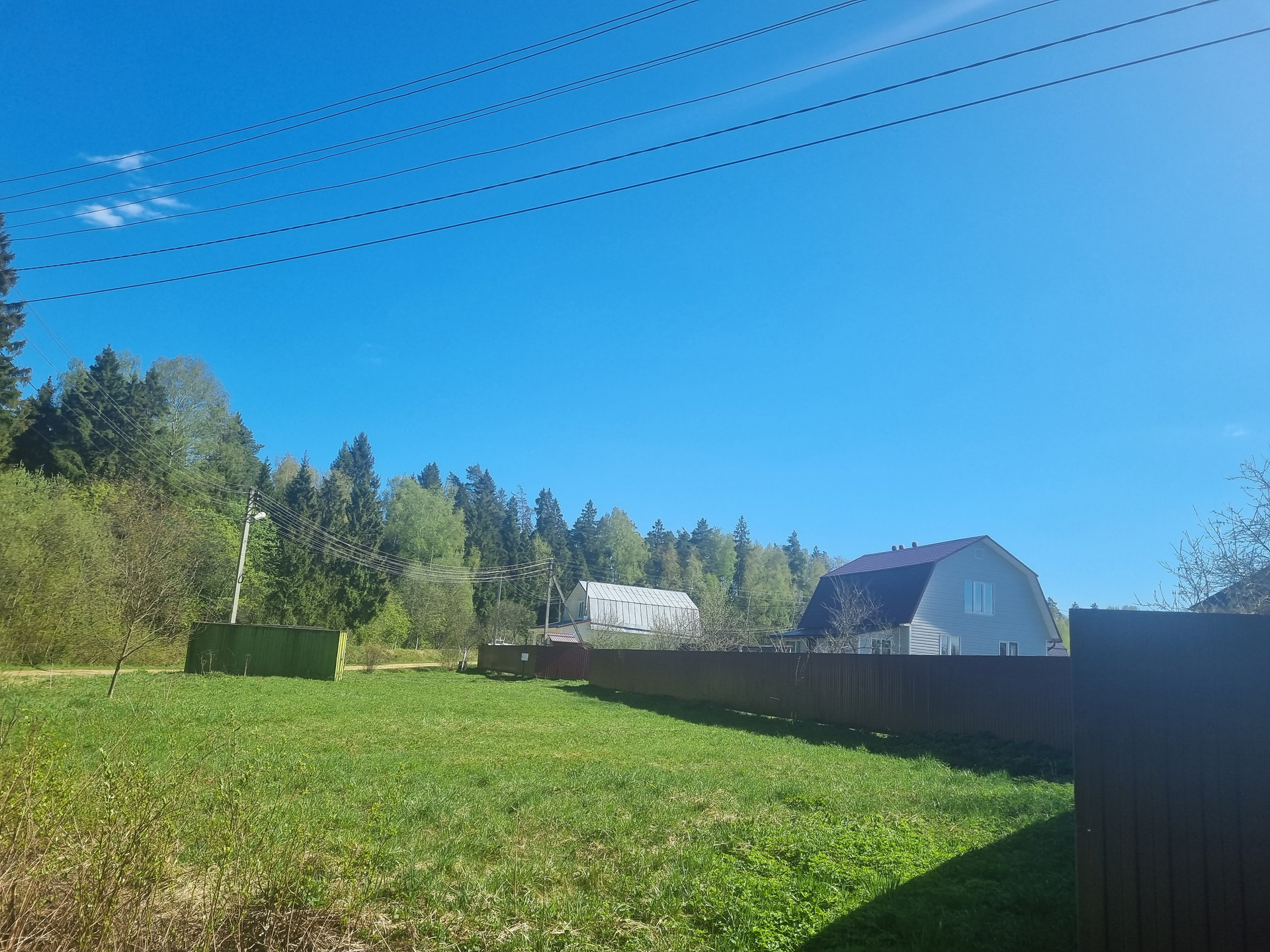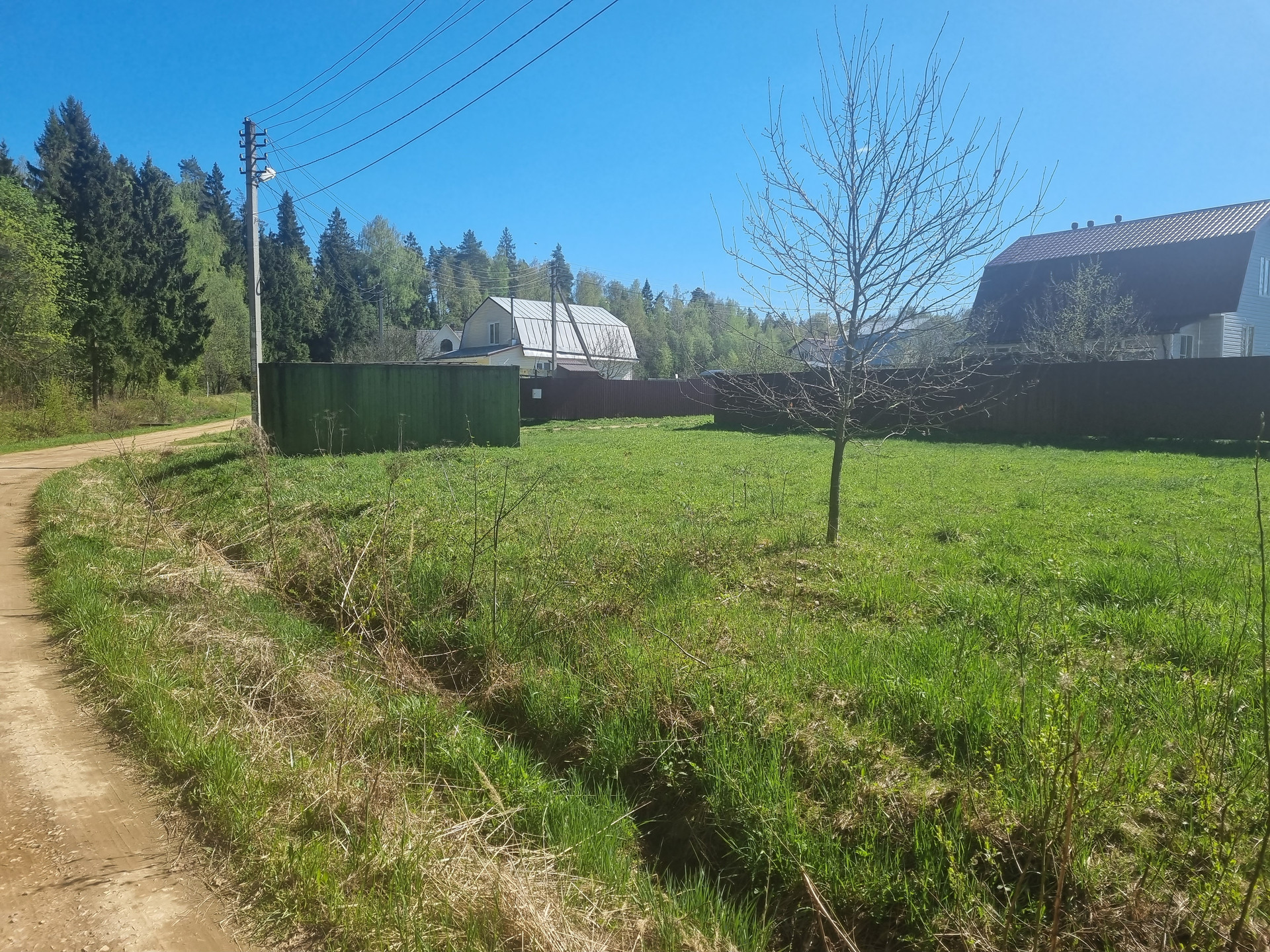Рядом с участком есть магазин. В поселке планируется строительство забора по периметру, детской площадки и спортивной площадки.