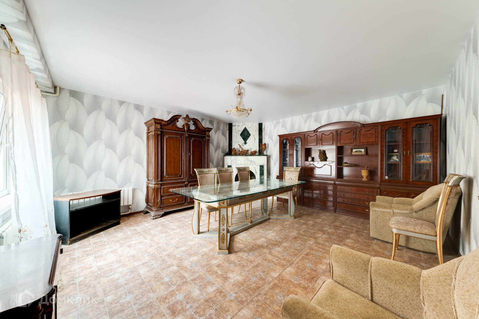 просторную гостиную с камином и со вторым светом,