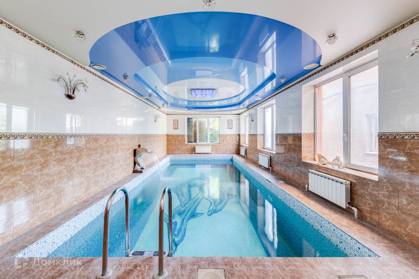 Высокие потолки и мультифункциональные широкоформатные окна создают светлую и воздушную атмосферу, подчеркивая благородства данного дома. В доме теплый гараж на 2 автомобиля, большой бассейн, сауна, бильярдная комната с баром.