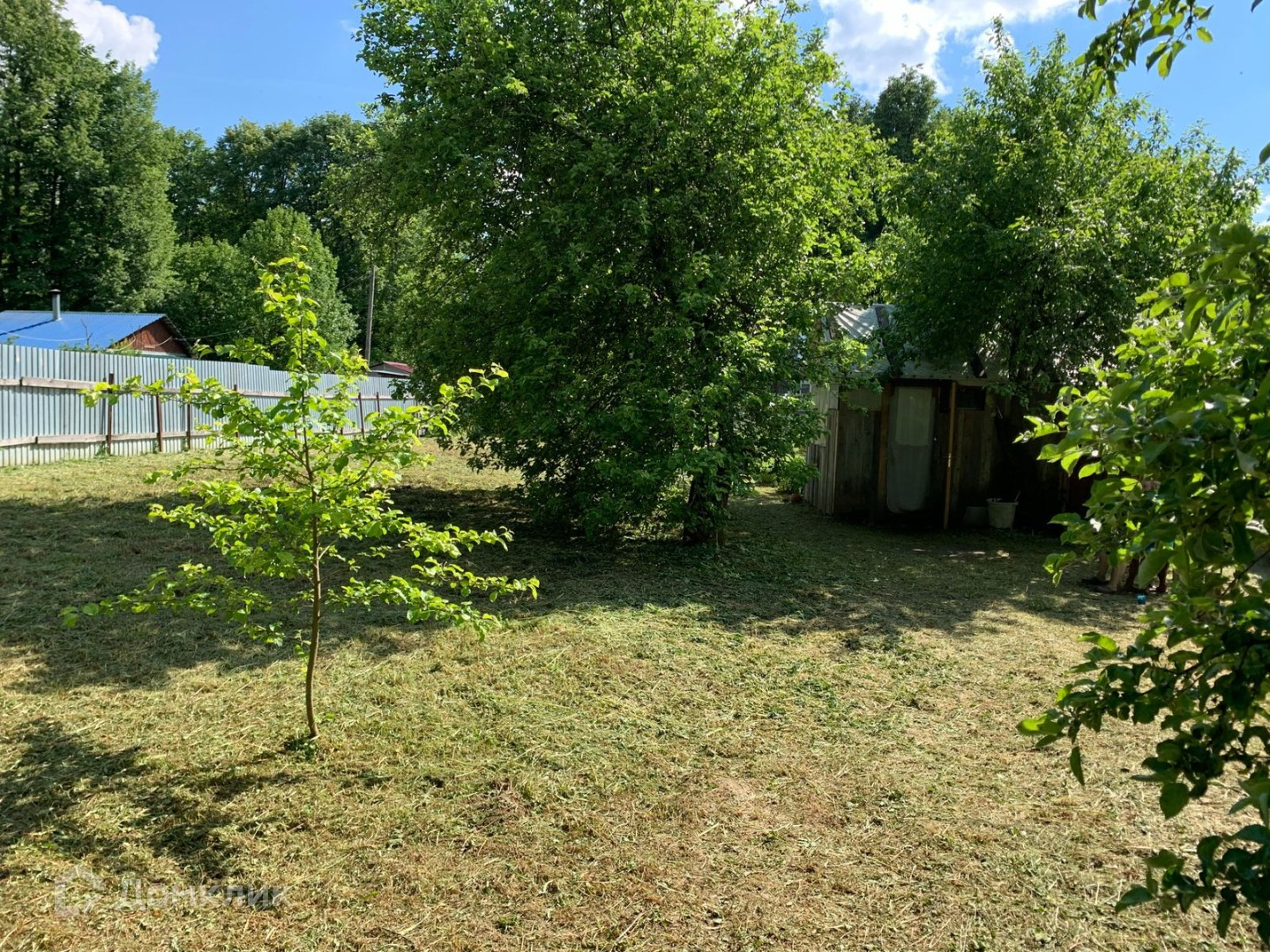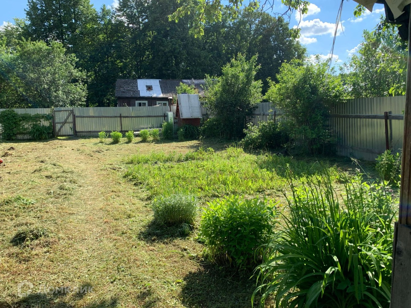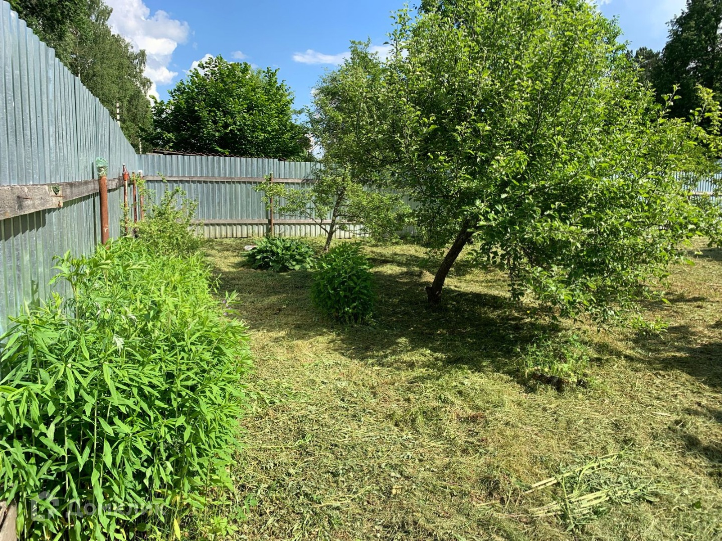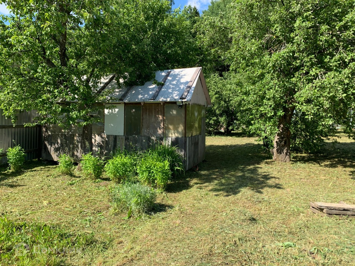 Участок ровный, ухоженный, прямоугольной формы. Много плодовых деревьев, кустарников, многолетних цветов, есть хоз.постройки. Вода - колодец, свет подключен, газ - по границе. Хорошие соседи. Через дорогу - лес. В пяти минутах - остановка общественного транспорта.