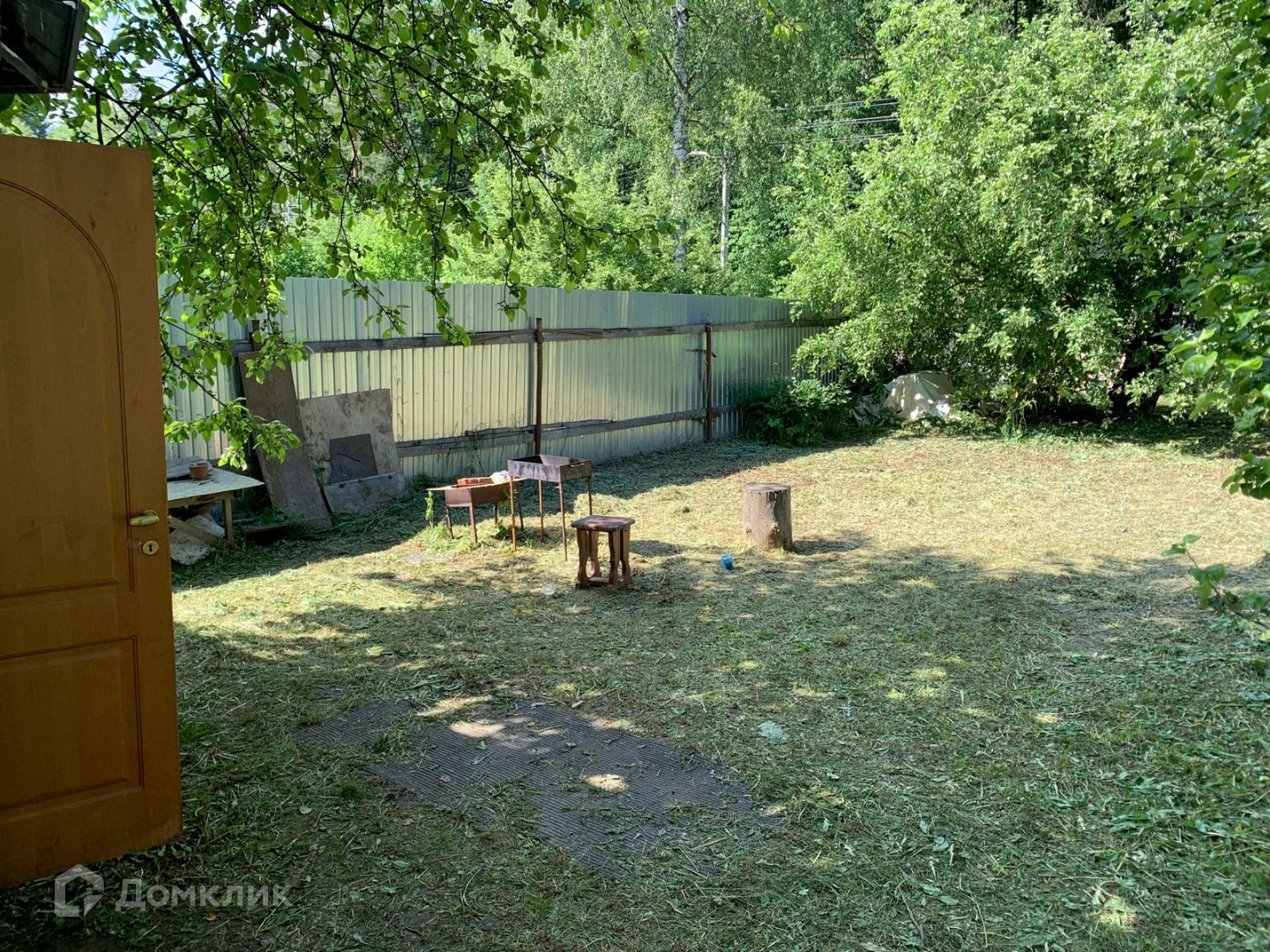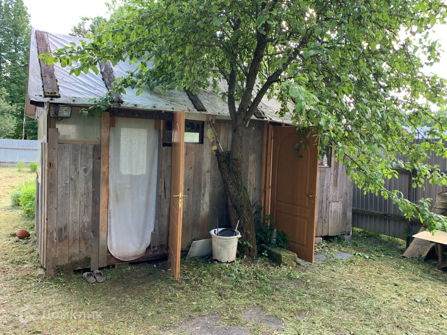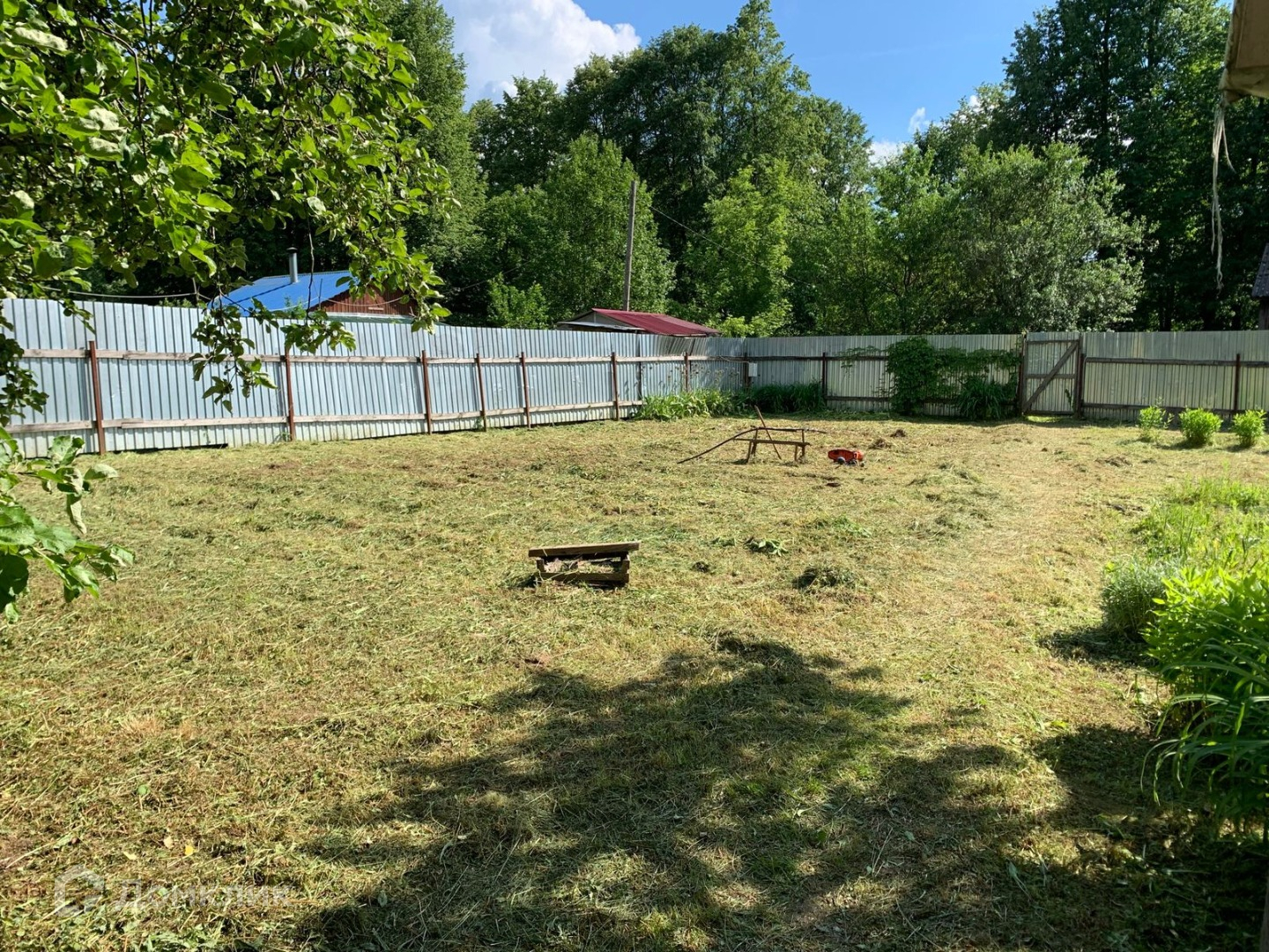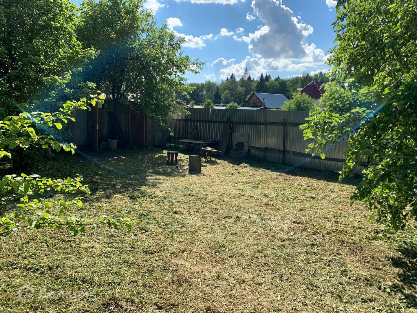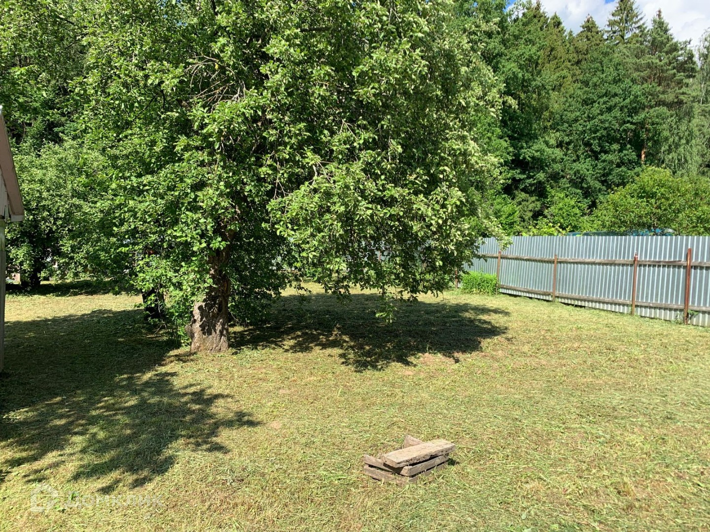 Участок ровный, ухоженный, прямоугольной формы. Много плодовых деревьев, кустарников, многолетних цветов, есть хоз.постройки. Вода - колодец, свет подключен, газ - по границе. Хорошие соседи. Через дорогу - лес. В пяти минутах - остановка общественного транспорта.