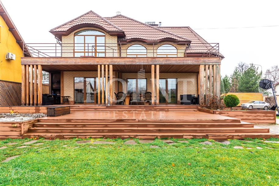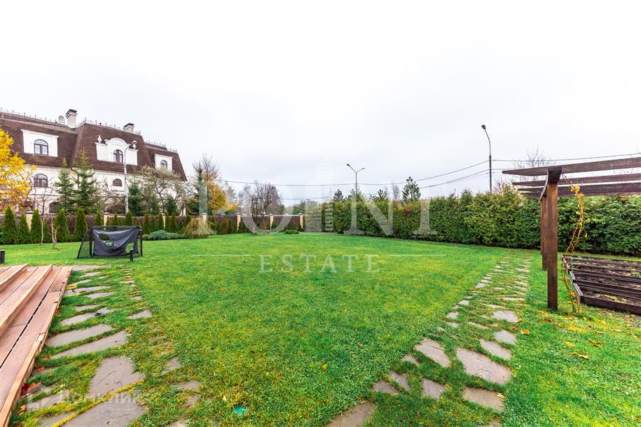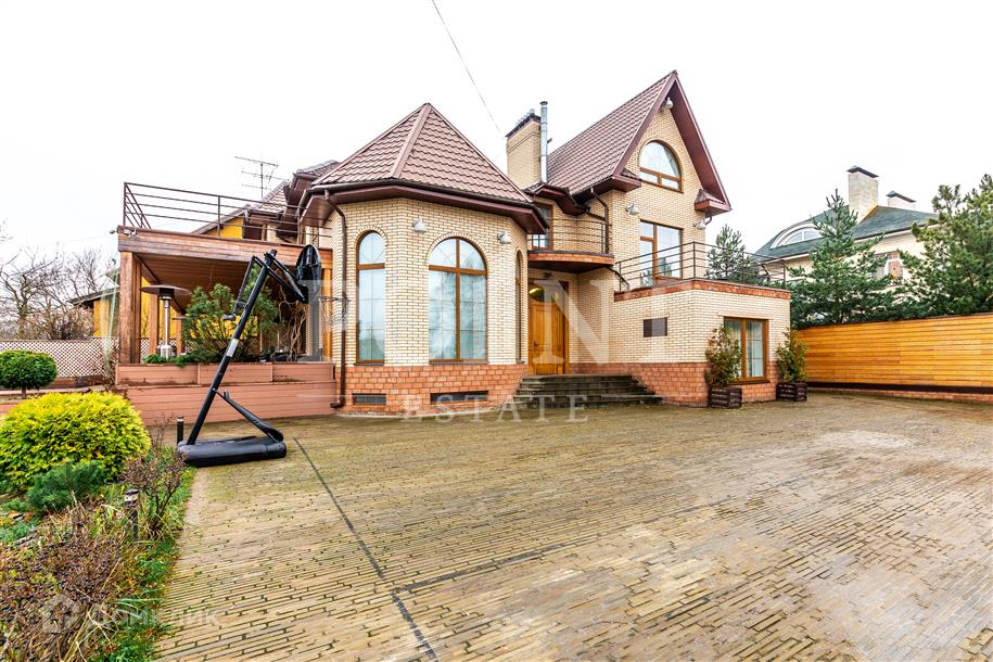 Лот: 86591.   Загородный дом в четыре уровня площадью 430 кв.м под ключ с мебелью построен на участке 16 соток в тихом месте рядом с прудом в населенном пункте на Рублево-Успенском шоссе. Дом оснащен системой видеонаблюдения. Комфортная планировка. На первом уровне (цоколь) размещен тренажерный зал, бассейн, сауна, комната отдыха, два санузла, блок для персонала, котельная. Второй уровень занимает двусветная гостиная с камином, кухня, столовая, кабинет, спальня, гостевой санузел, кладовая, постирочная, прихожая, терраса. Третий уровень включает в себя две спальни, два санузла, холл, гардеробную и террасу. Четвертый уровень (мансарда) отведен под спальню, детскую игровую и санузел. На придомовой территории выполнен ландшафтный дизайн, есть фонтан, предусмотрена парковка на десять машино-мест, а также навес для одного автомобиля. Развитая инфраструктура Рублево-Успенского направления к услугам жителей.