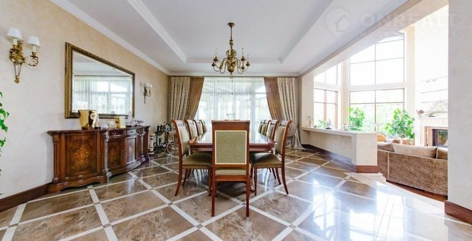Номер объекта: 013013. Продам дом на Рублево-Успенском шоссе, в 7 км. от Москвы, в месте под названием Подушкино. Дом 3-х уровневый, кирпичный (площадь - 1400 м.кв.), расположен на земельном участке размером 40 сот. Есть гараж на 3 а/м. Отделка - под ключ. В цоколе: кухня-гостиная с выходом на террасу, с/у, комната свободного назначения (оружейная), бильярдная, гардеробная, кинотеатр (место отдыха), гладильная, котельная с водоочисткой, зона техническая бассейна. На первом этаже: гардеробная, с/у, кухня, гостиный зал со вторым светом, зона спа: душевая, с/у, хамам, сауна, бассейн 11м с выходом на просторную веранду, столовая. На втором этаже: кабинет, с/у, 2 гостевые с с/у и гардеробными, хозяйская спальня с с/у и гардеробной. На участке: гостевой блок: