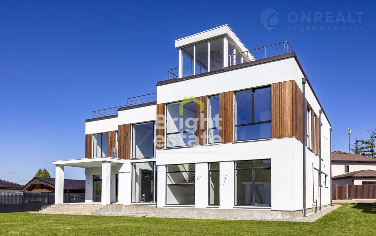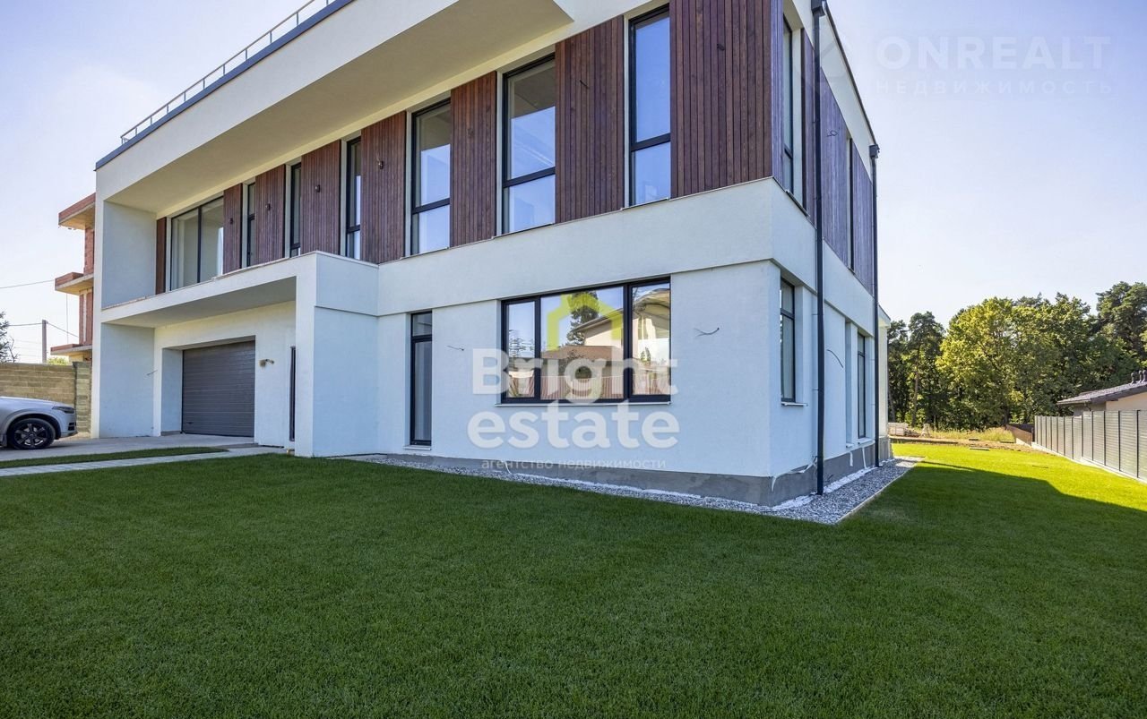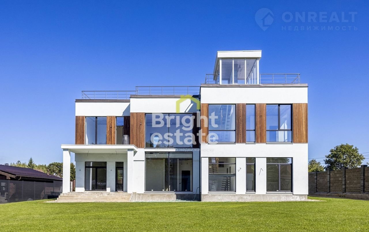 Предлагается на продажу современный дом общей площадью 412 кв.м. в коттеджном поселке рядом с Подушкинским лесопарком, Рублево-Успенское шоссе, 11 км от МКАД.