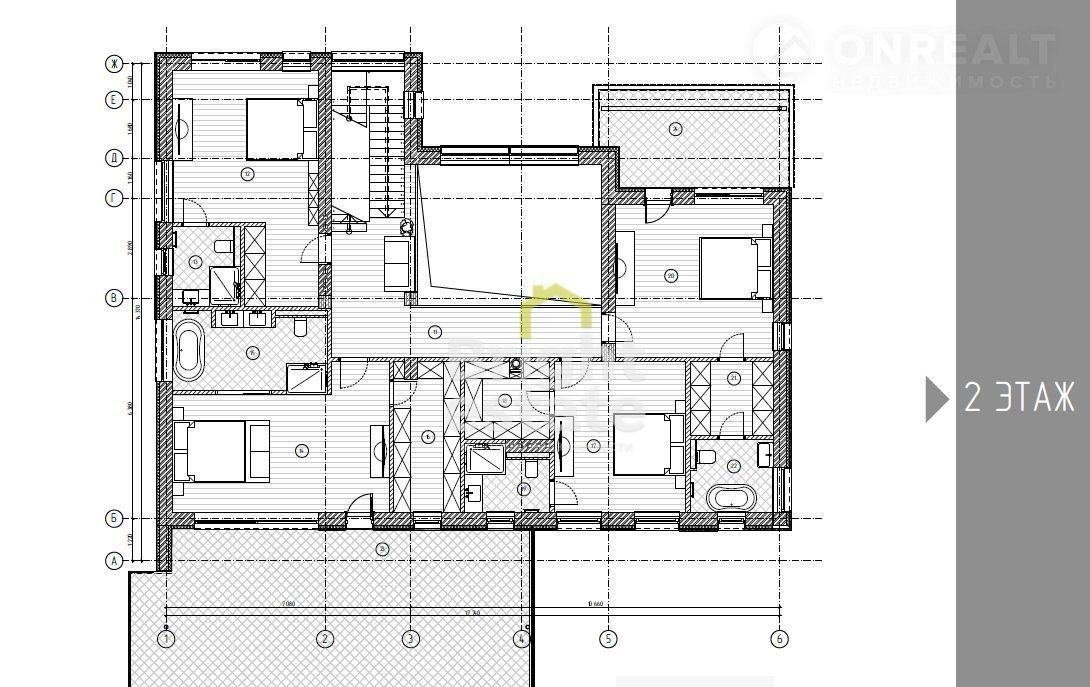2 этаж: 4 спальни, 4 с/у, 3 гардеробные.