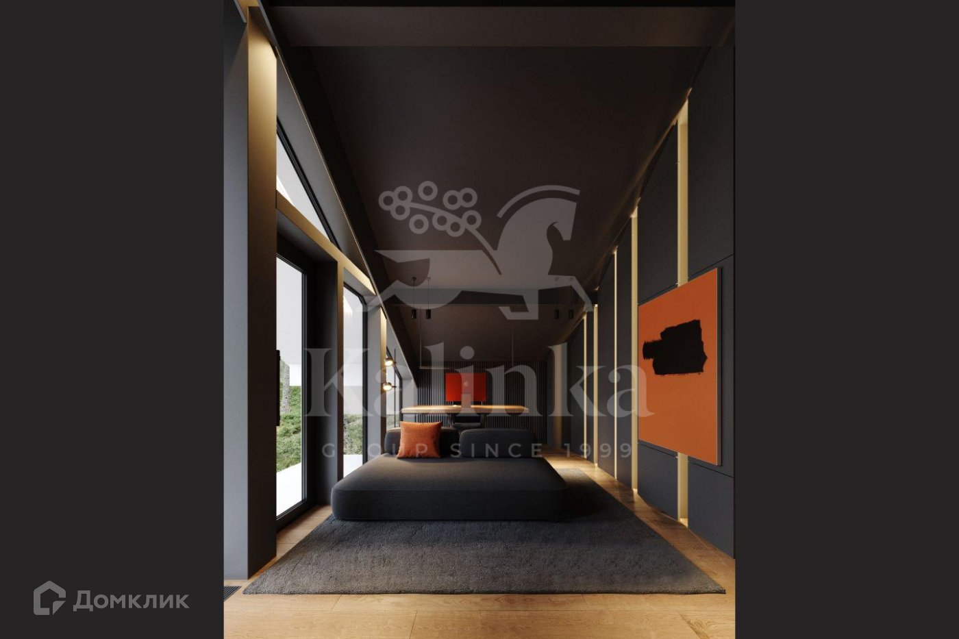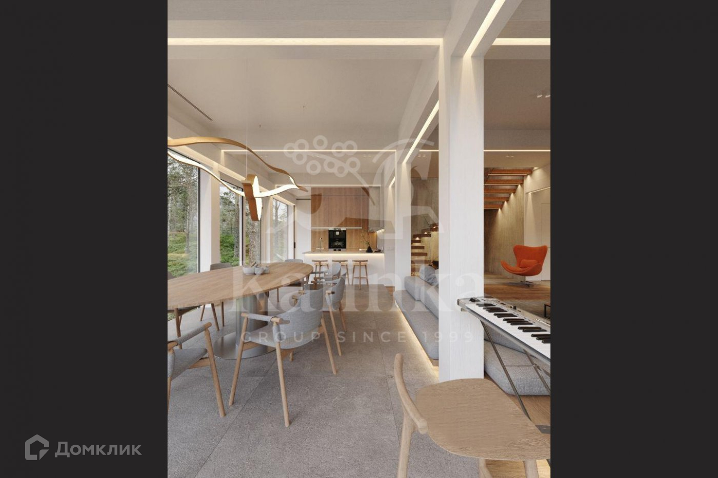В отделке дома используются качественные материалы (итальянская плитка, дерево). Окна панорамные, энергоэффективные, в пол, сдвижной HS портал с выходом на террасу.