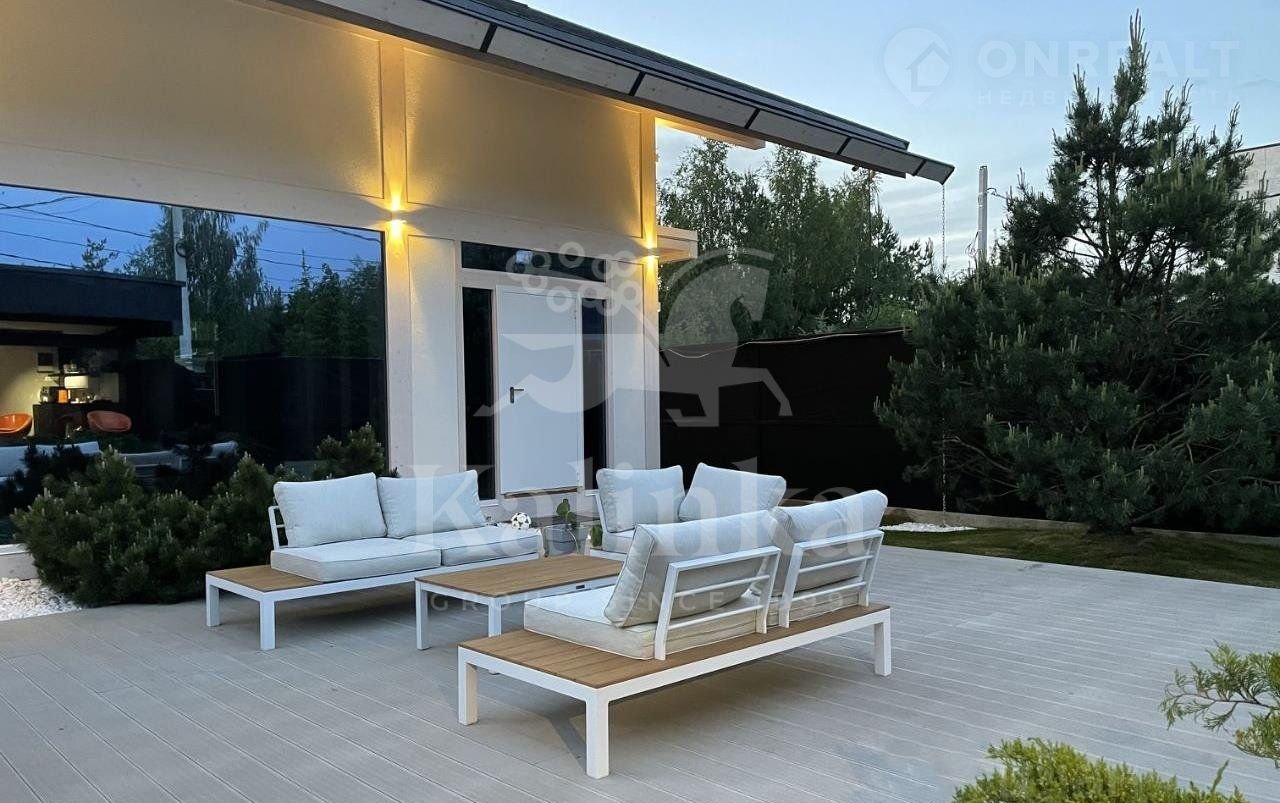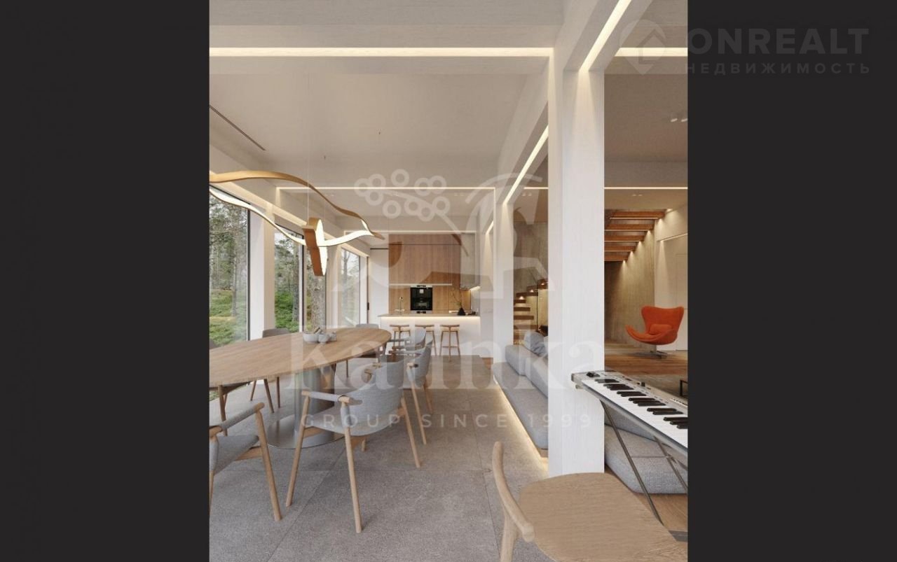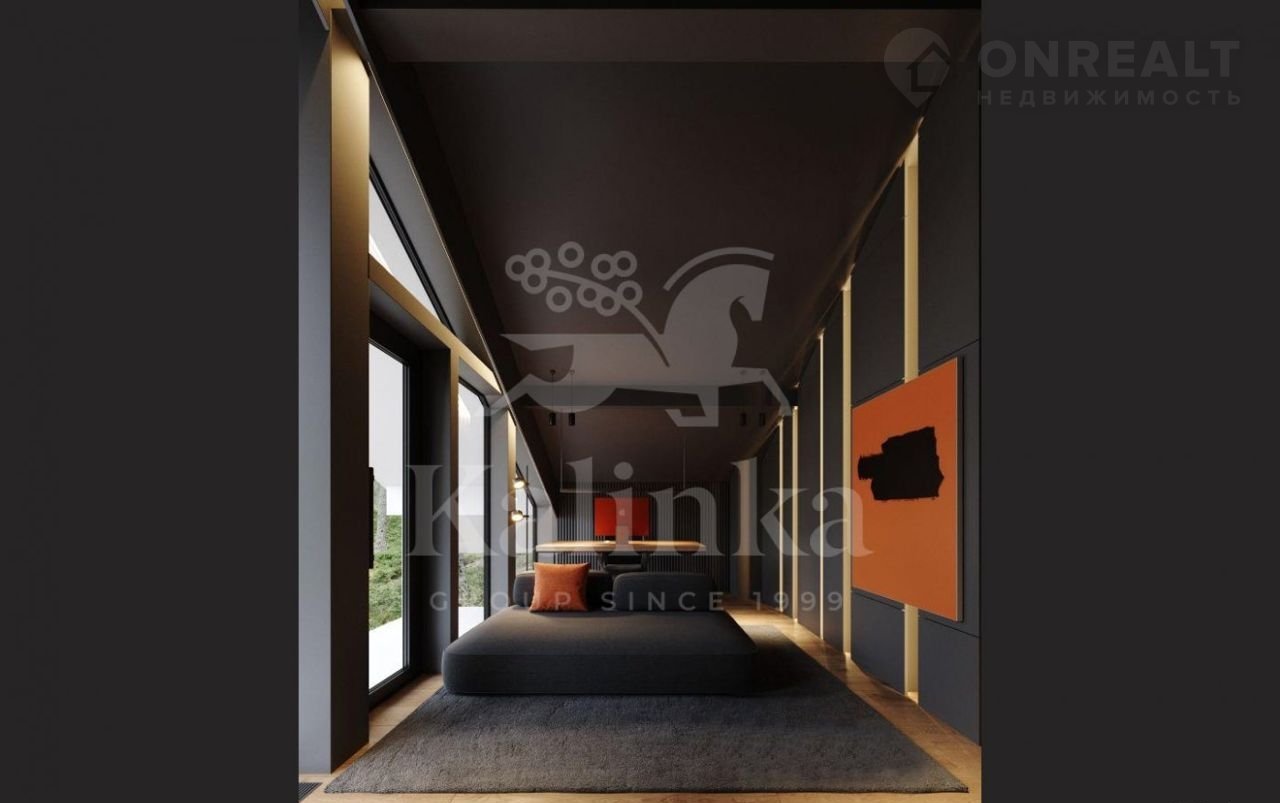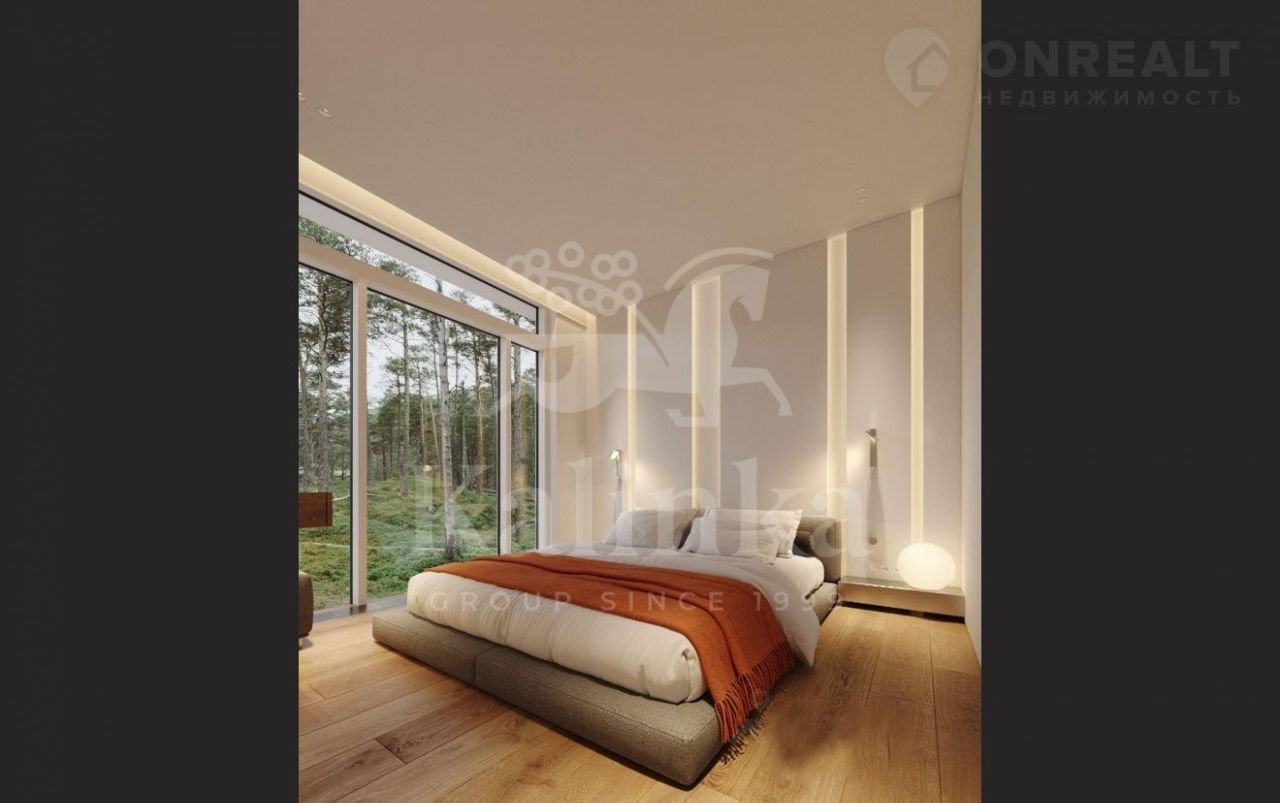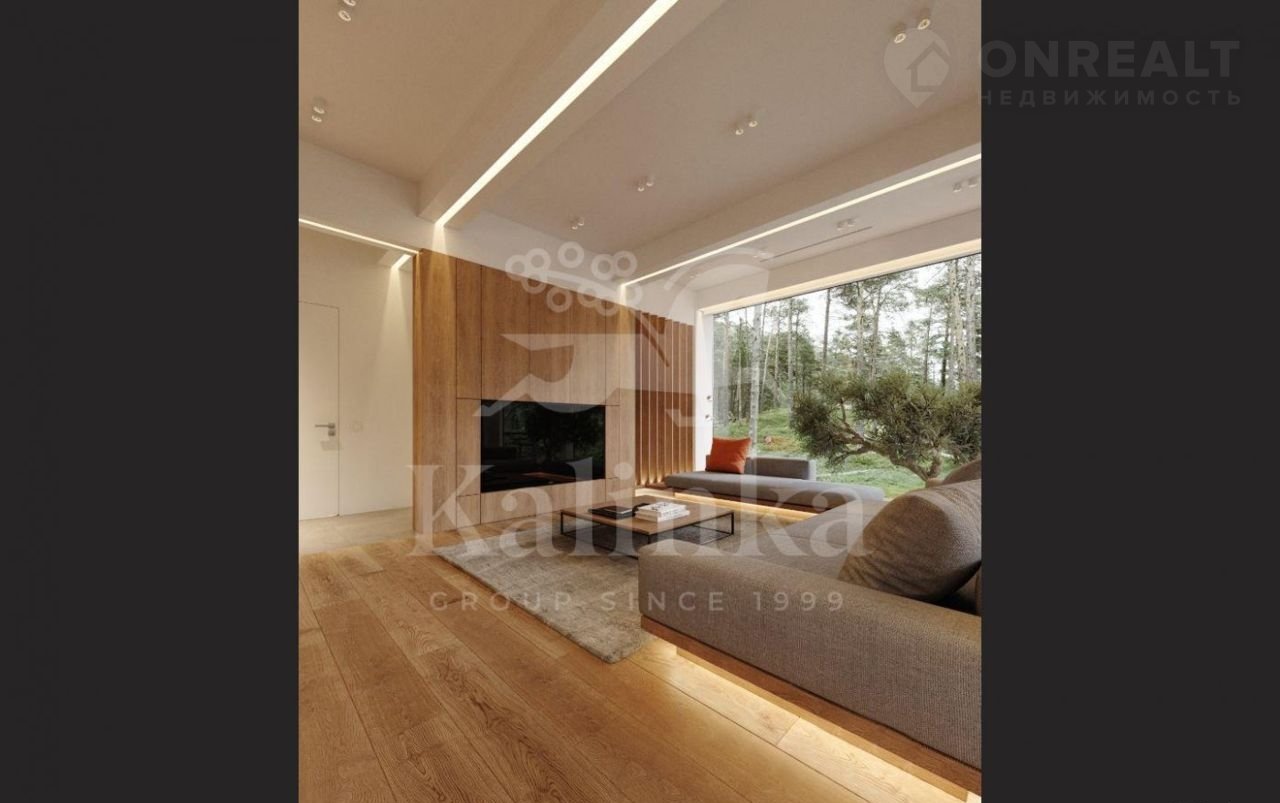 В отделке дома используются качественные материалы (итальянская плитка, дерево). Окна панорамные, энергоэффективные, в пол, сдвижной HS портал с выходом на террасу.