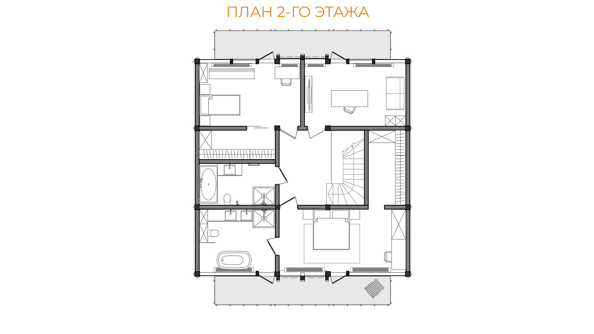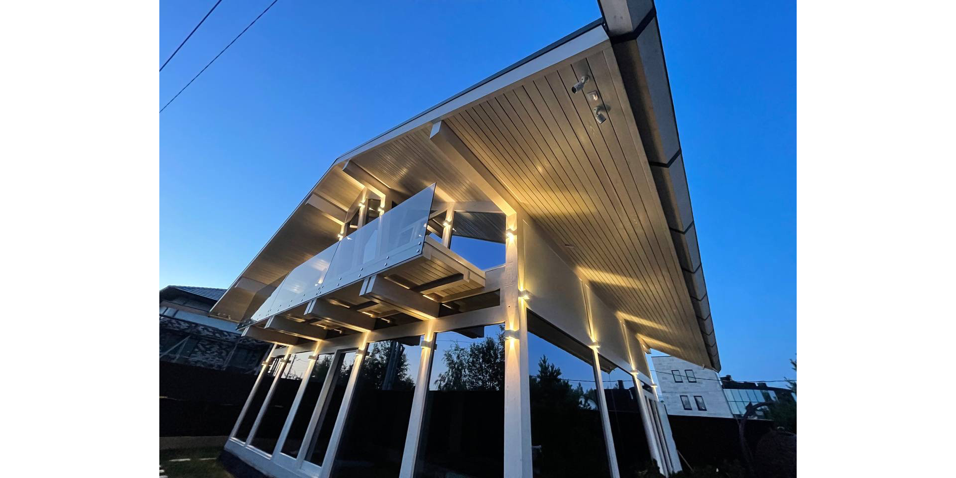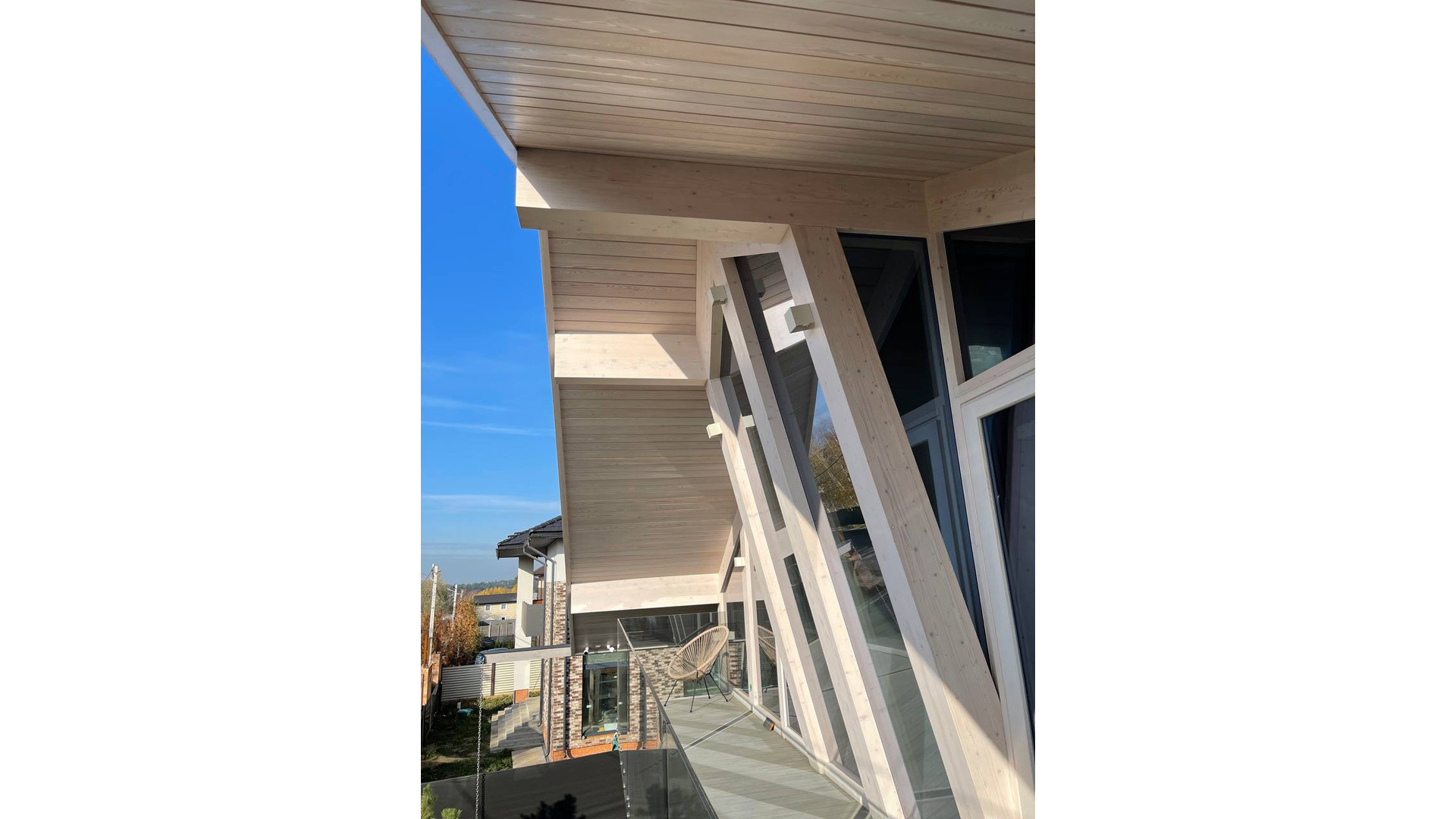 - балкон под свесами при мастер спальне с видом на посёлок