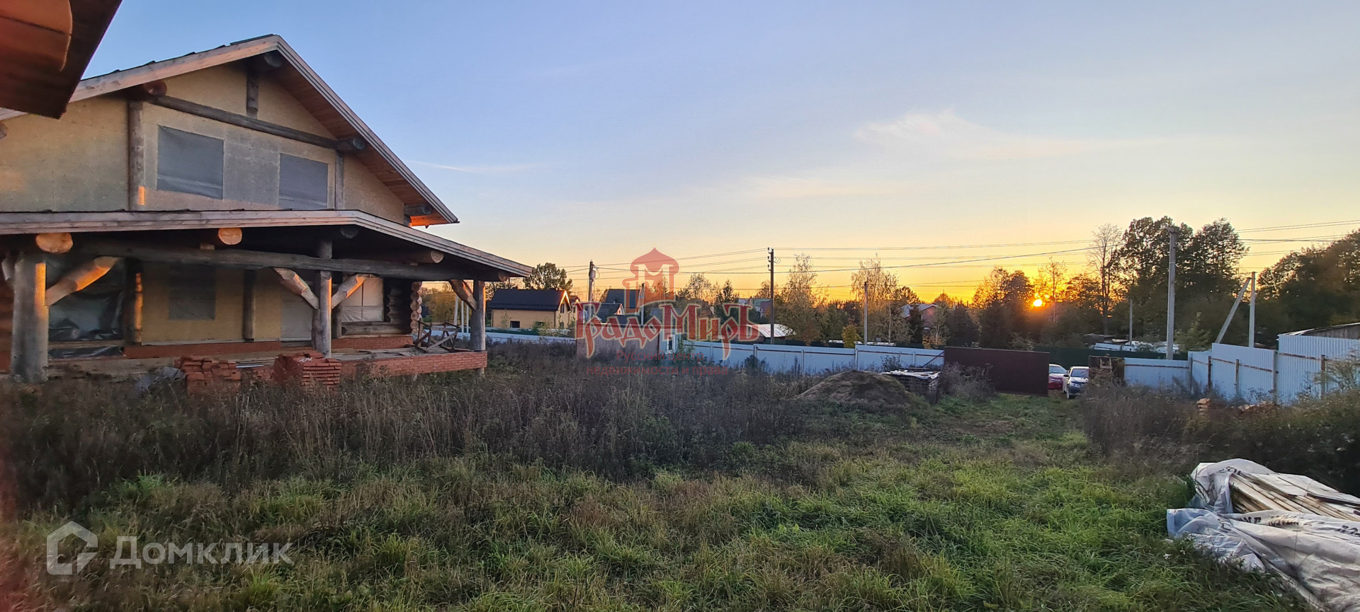 24 соток, широкий. В стоимость включен забор по периметру (деревянный штакетник) с калиткой и откатными въездными воротами.