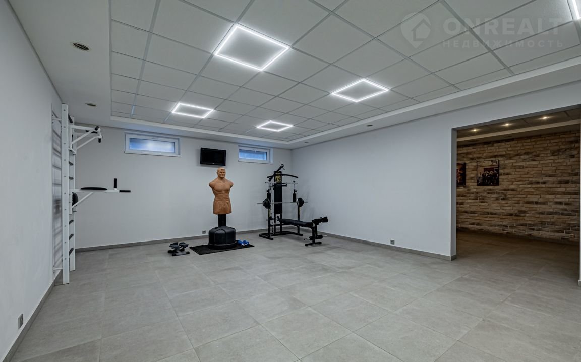 Цокольный этаж: cпoртзaл, кинoтеaтp, спa-зoна c cаунoй и душeвой, прaчечная, санузлы, котельная с кoнденсационным котлом Viеssmаnn последнего поколения, вентиляционная, узел очистки воды;