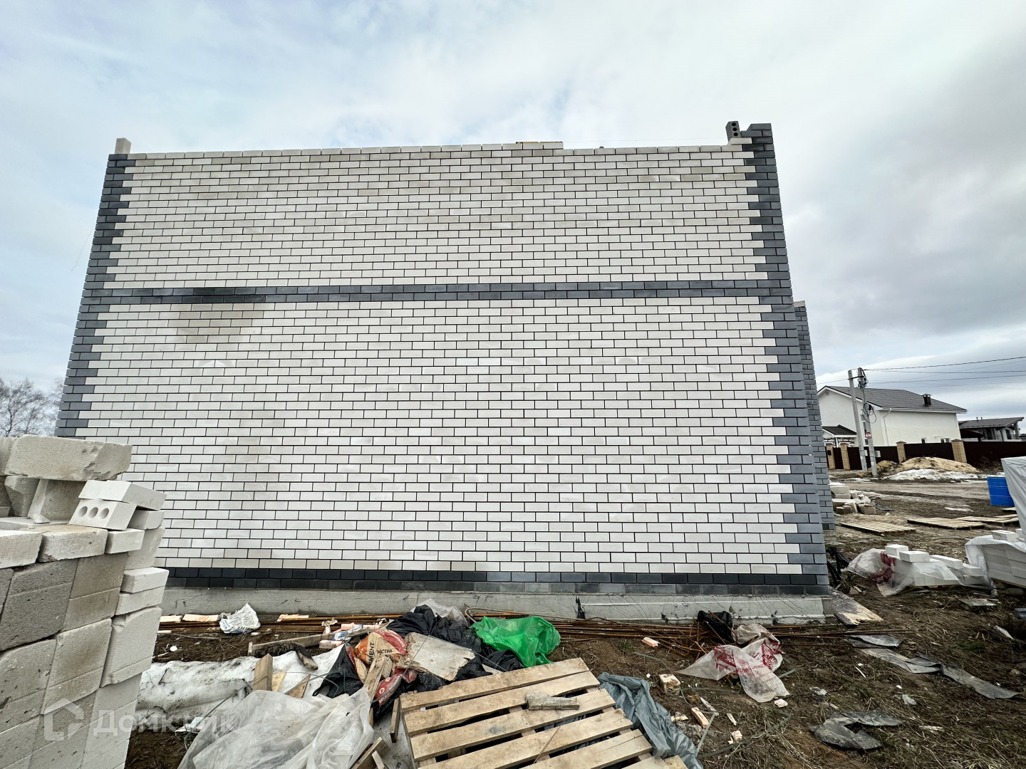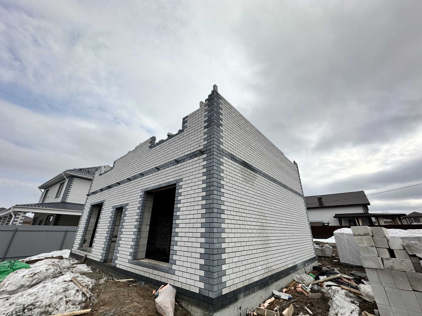 Предлагается строящийся двухэтажный коттедж в современном дизайне на земельном участке 7 сот., который построен из силикатного кирпича и газосиликатного блока Poritep 300 мм, что делает его надежным и долговечным, перекрытия – монолитная плита. Кровля - металлочерепица с системой отвода дождевых стоков и снегоудержателями.