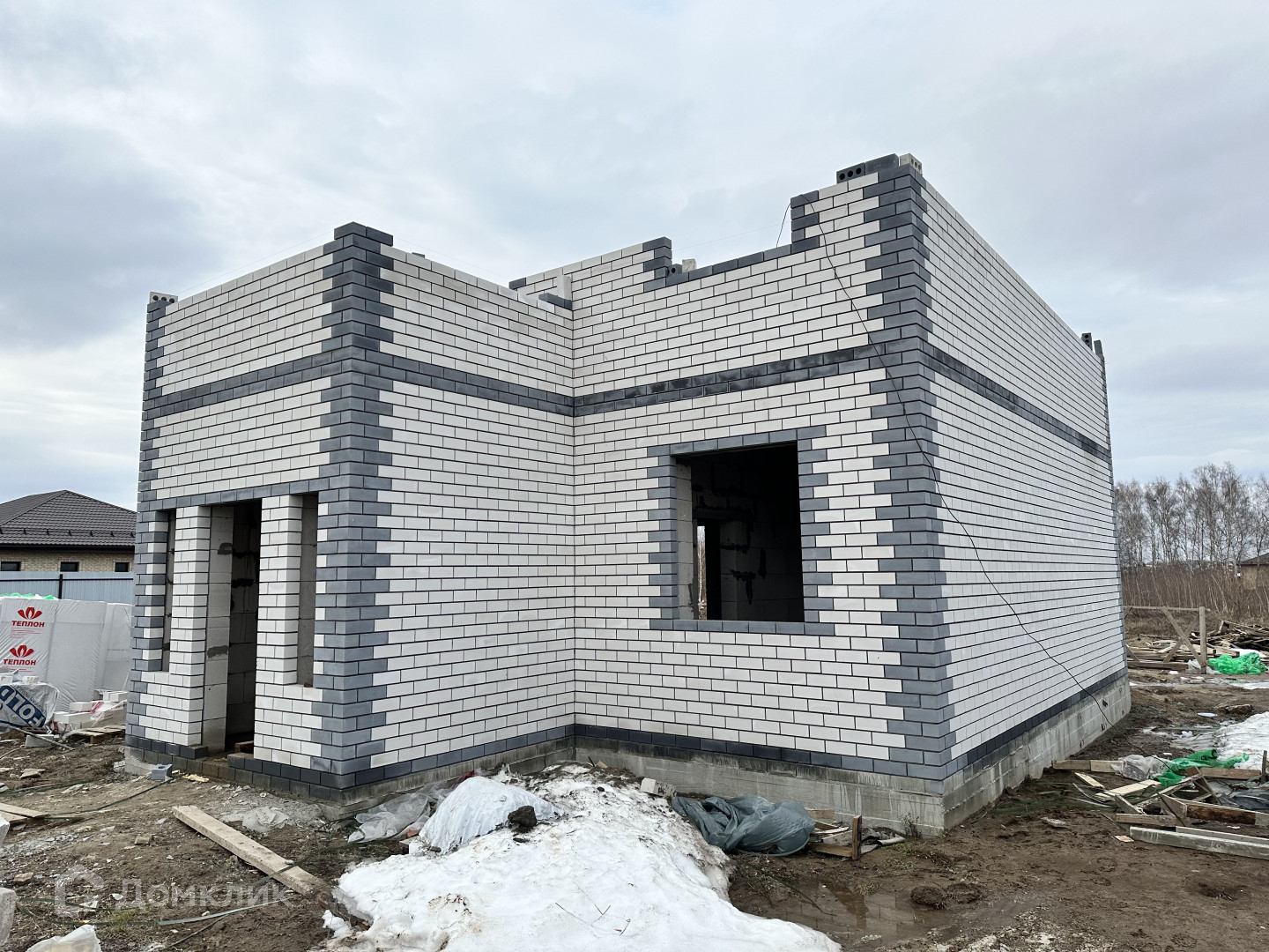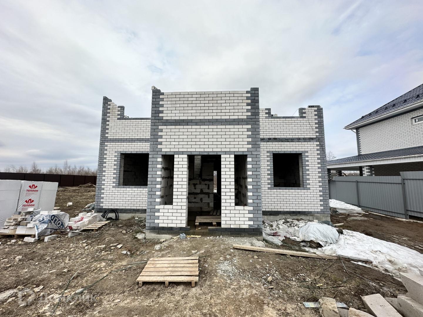 В коттедже установлена входная дверь с терморазрывом, а также пластиковые окна Rehau, септик - 3 кольца по 1,5м, газовый счетчик, а также двухконтурный газовый котел. Газ будет подключен!!!! По всему коттеджу выполнена разводка электричества, отопления, а также выполнены работы под чистовую отделку. На1-м этаже коттеджа расположены: комната – 12,5 кв.м., кухня-гостиная - 35,9 кв.м., с/узел - 7,6 кв.м., просторная прихожая - 12,9 кв.м. с межэтажной монолитной лестницей, а также веранда. По всему первому этажу разведены теплые полы, выполнена стяжка пола, включая с/узел, заведена вода – скважина глубиной 36 м с накопительным баком. На 2-м этаже коттеджа расположены три изолированные комнаты(13+12,9+15 кв.м.), гардеробная - 5,4 кв.м., с/узел - 6,2 кв.м., балкон. Все коммуникации по 2-му этажу будут также разведены! Также установлен забор с калиткой и воротами.