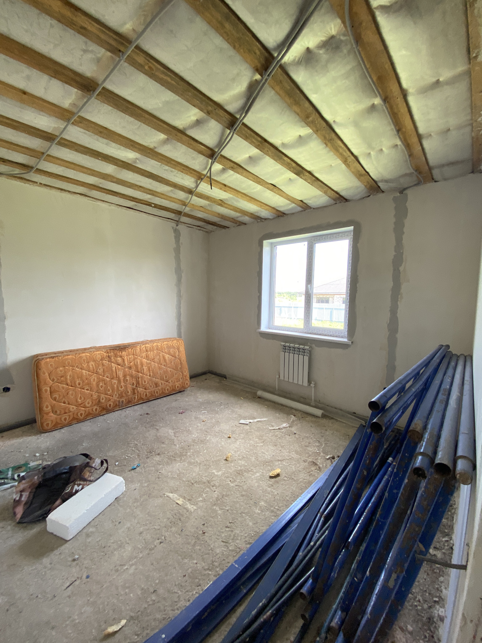 Предчистовая отделка, частично сделаны потолки, работы еще будут продолжаться.