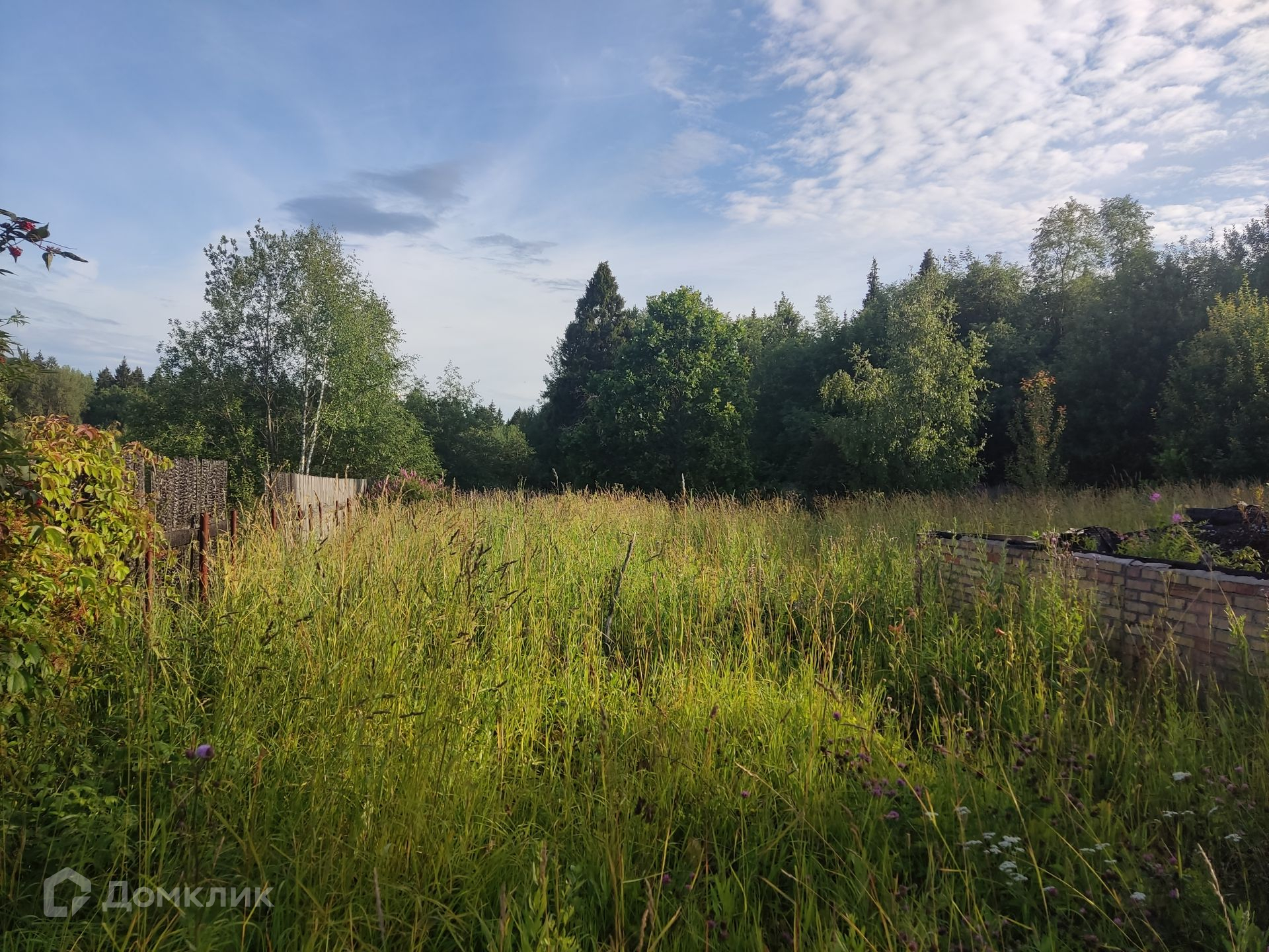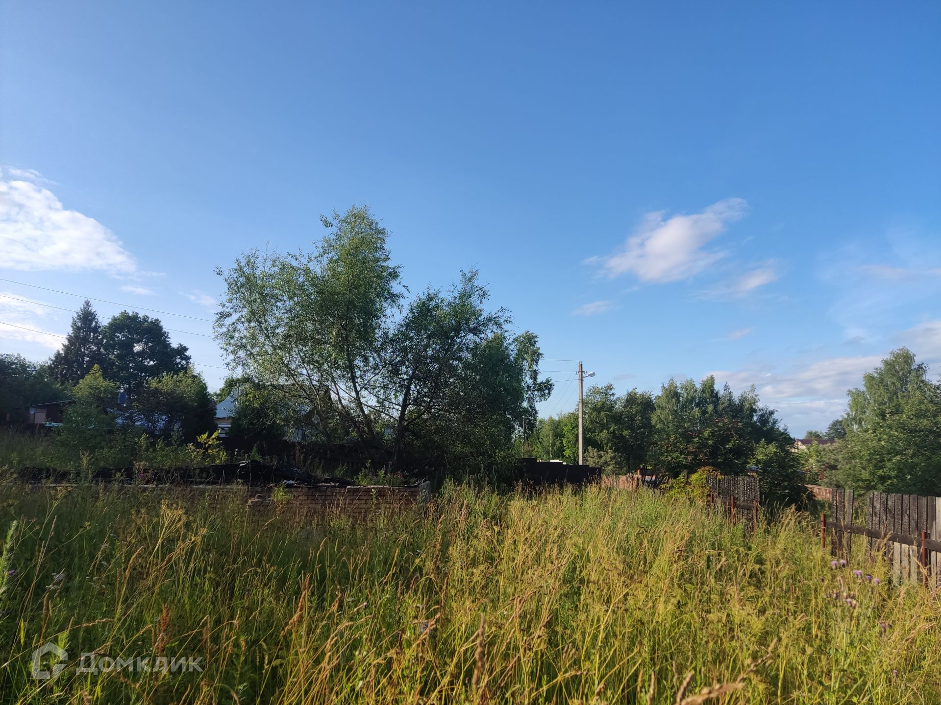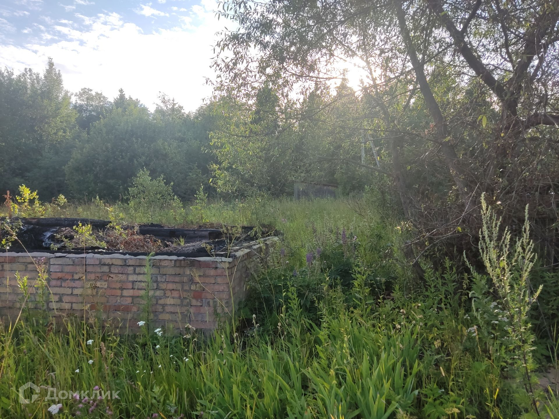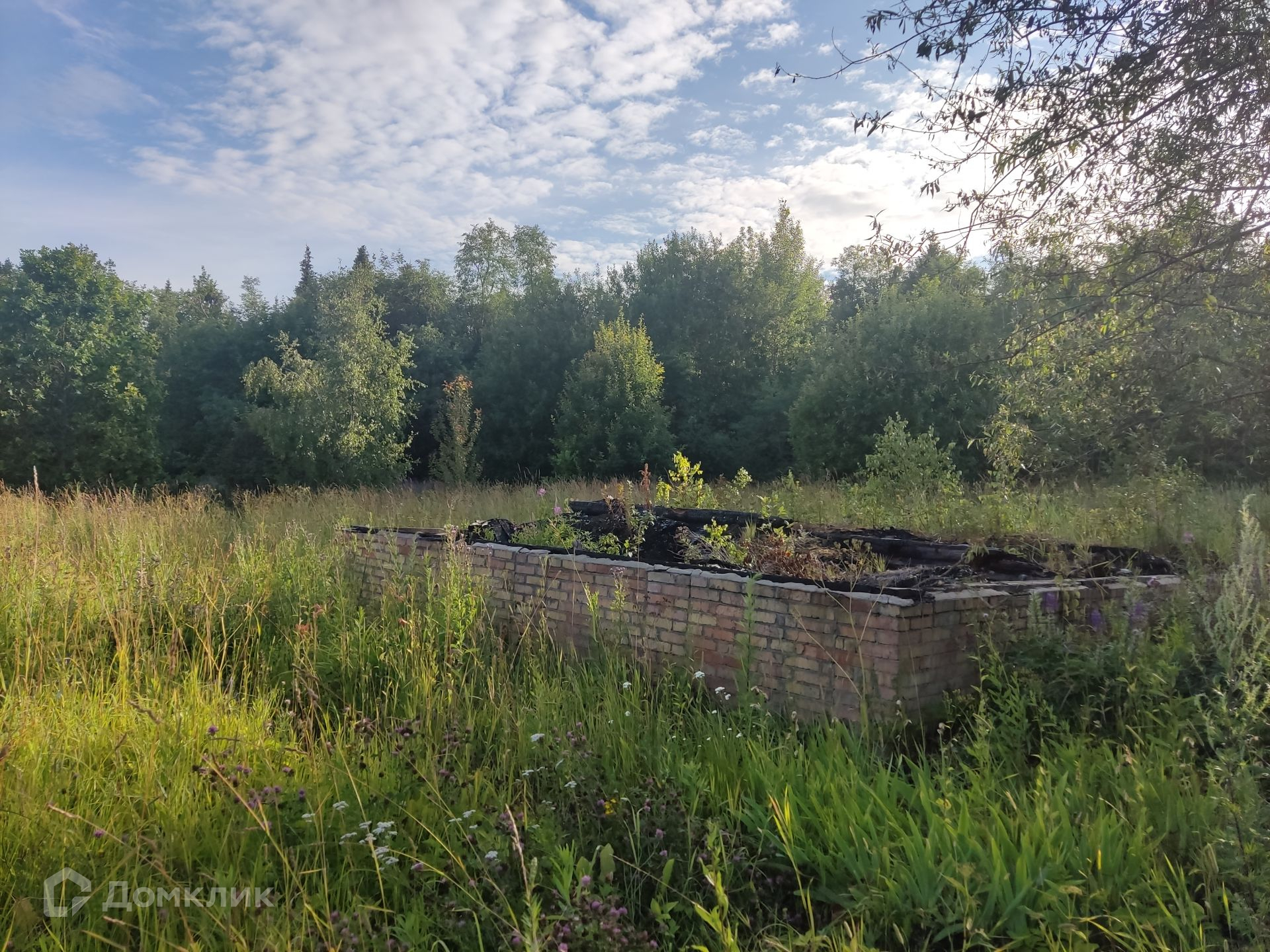 Участок: ровный, сухой, правильной прямоугольной формы, находится на возвышенности, что позволяет построить дом и любоваться панорамным видом на лес и поле, частями огорожен штакетником, ни с кем не граничит. На участке фундамент от сгоревшего дома и сарай (входит в стоимость). Дом 1999 г. постройки с регистрации не снимался (получать разрешение на строительство не нужно).