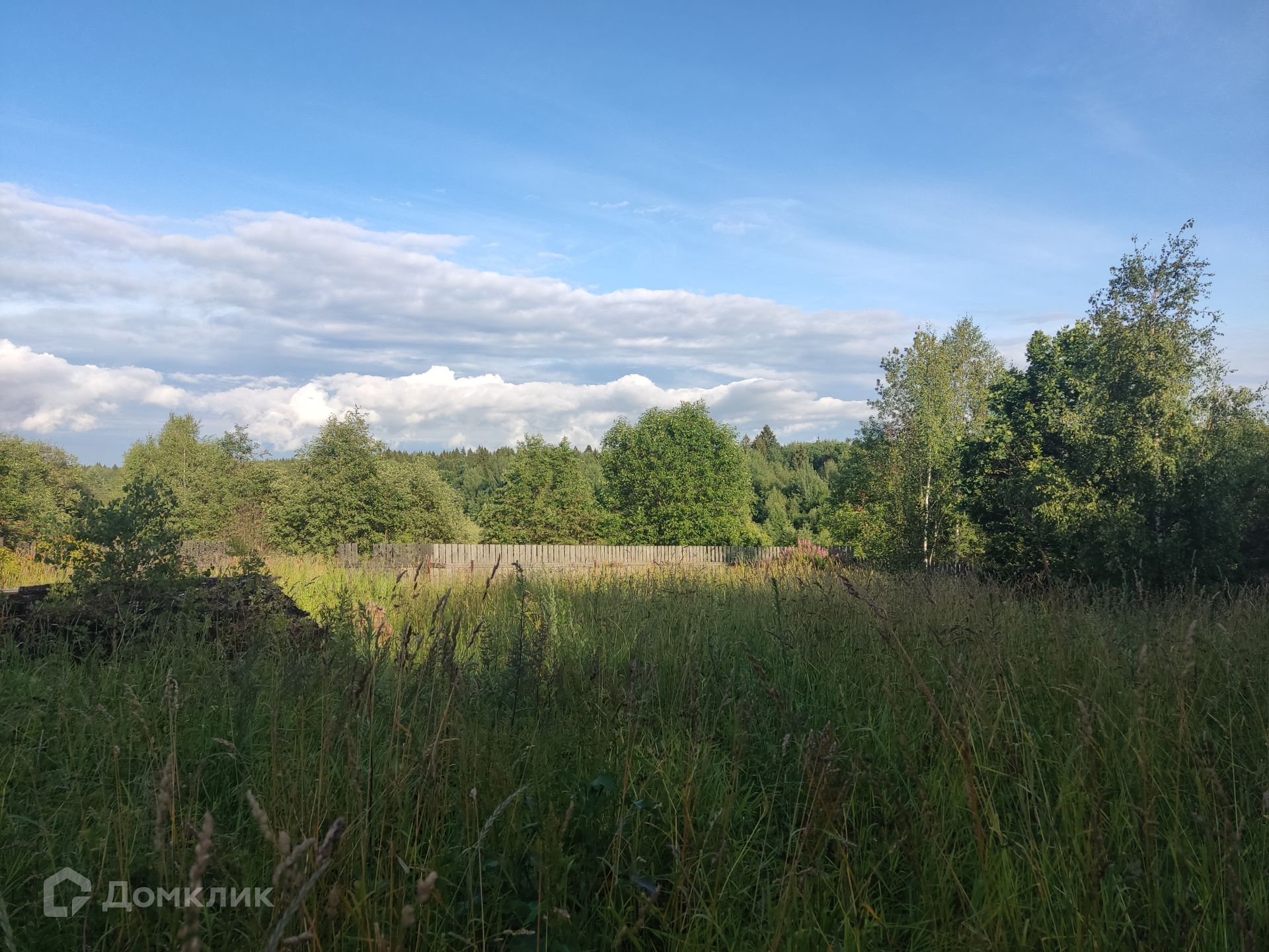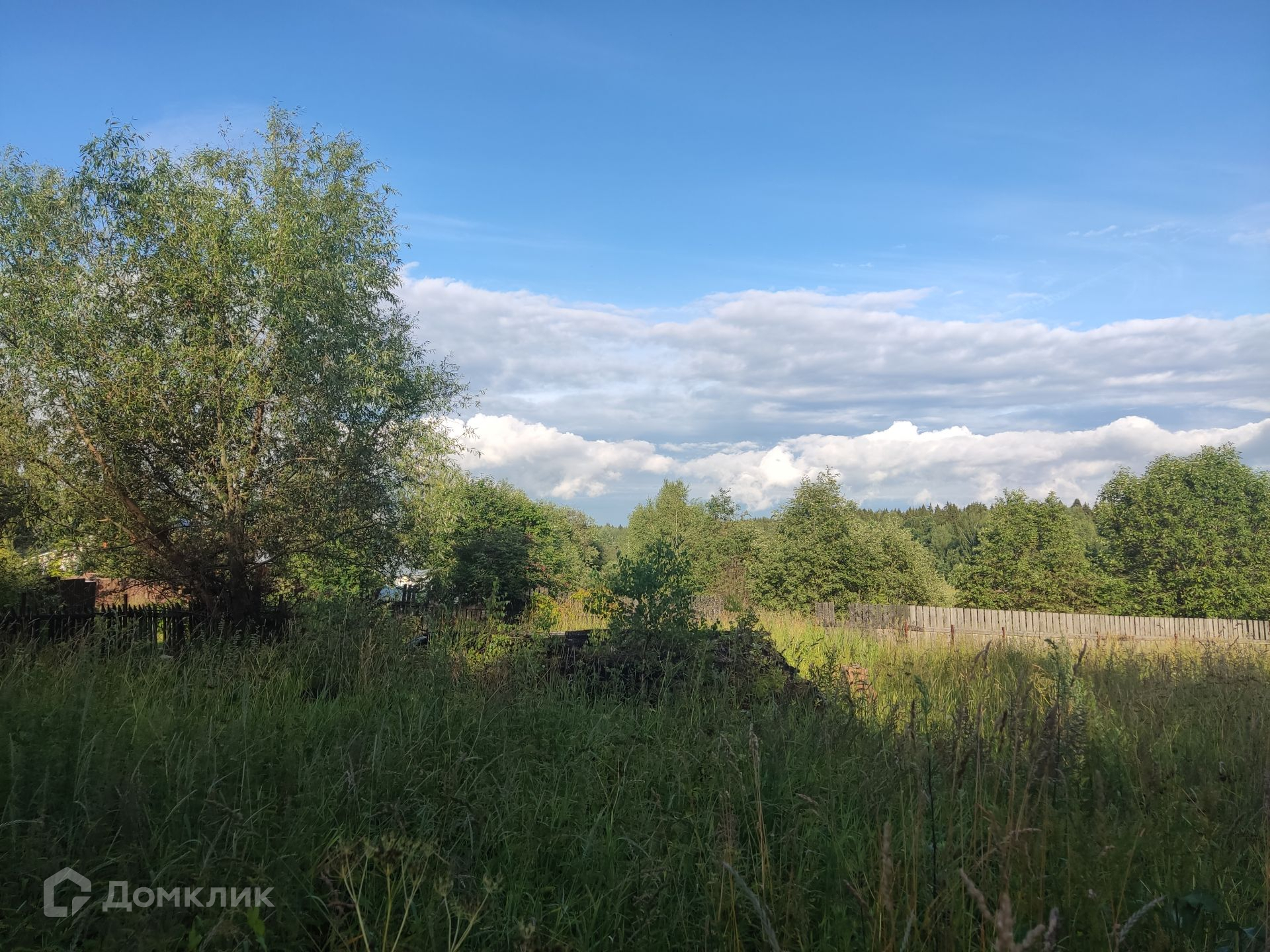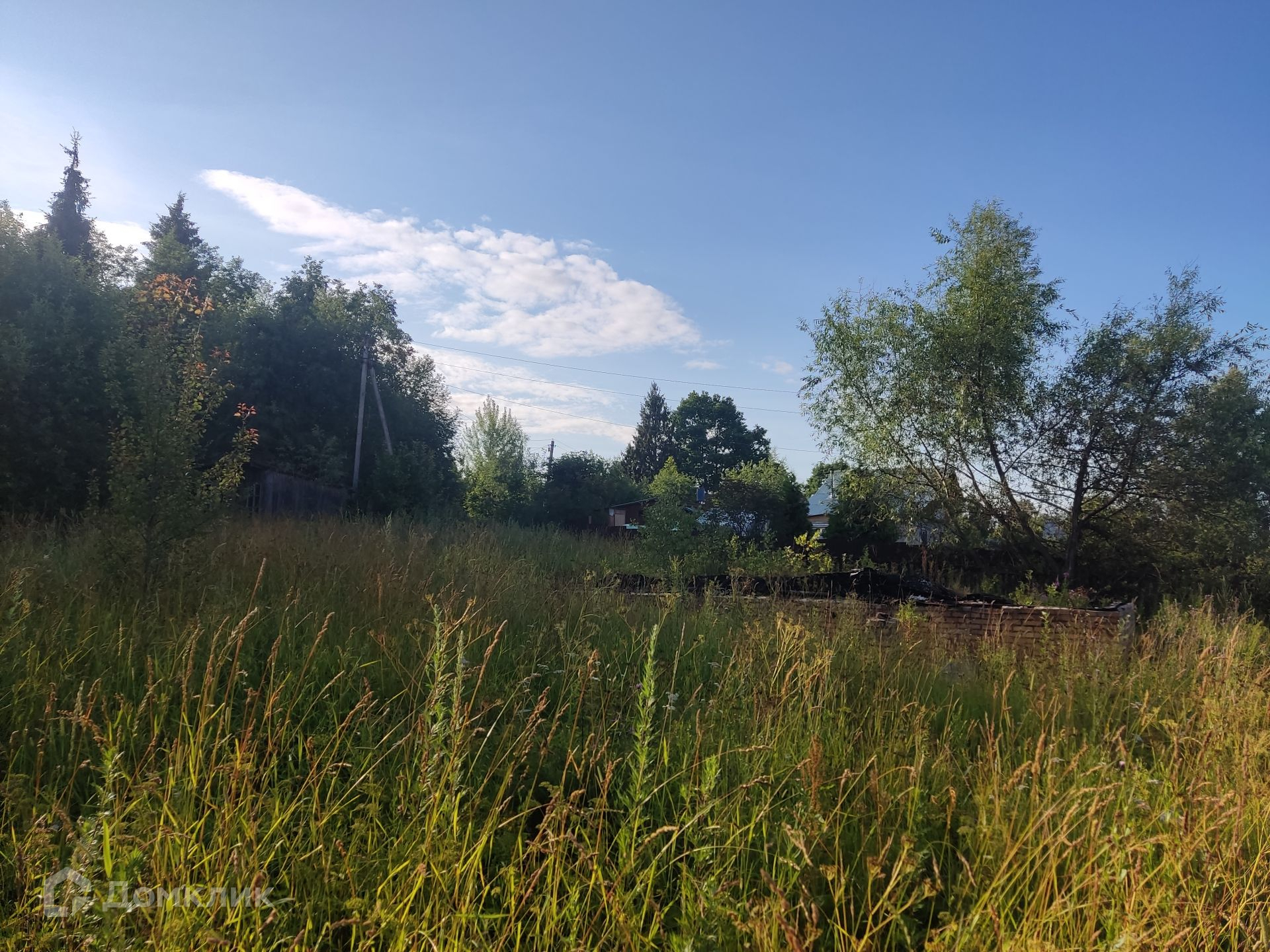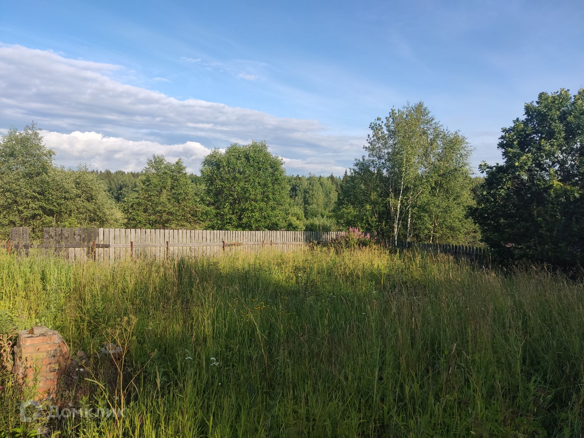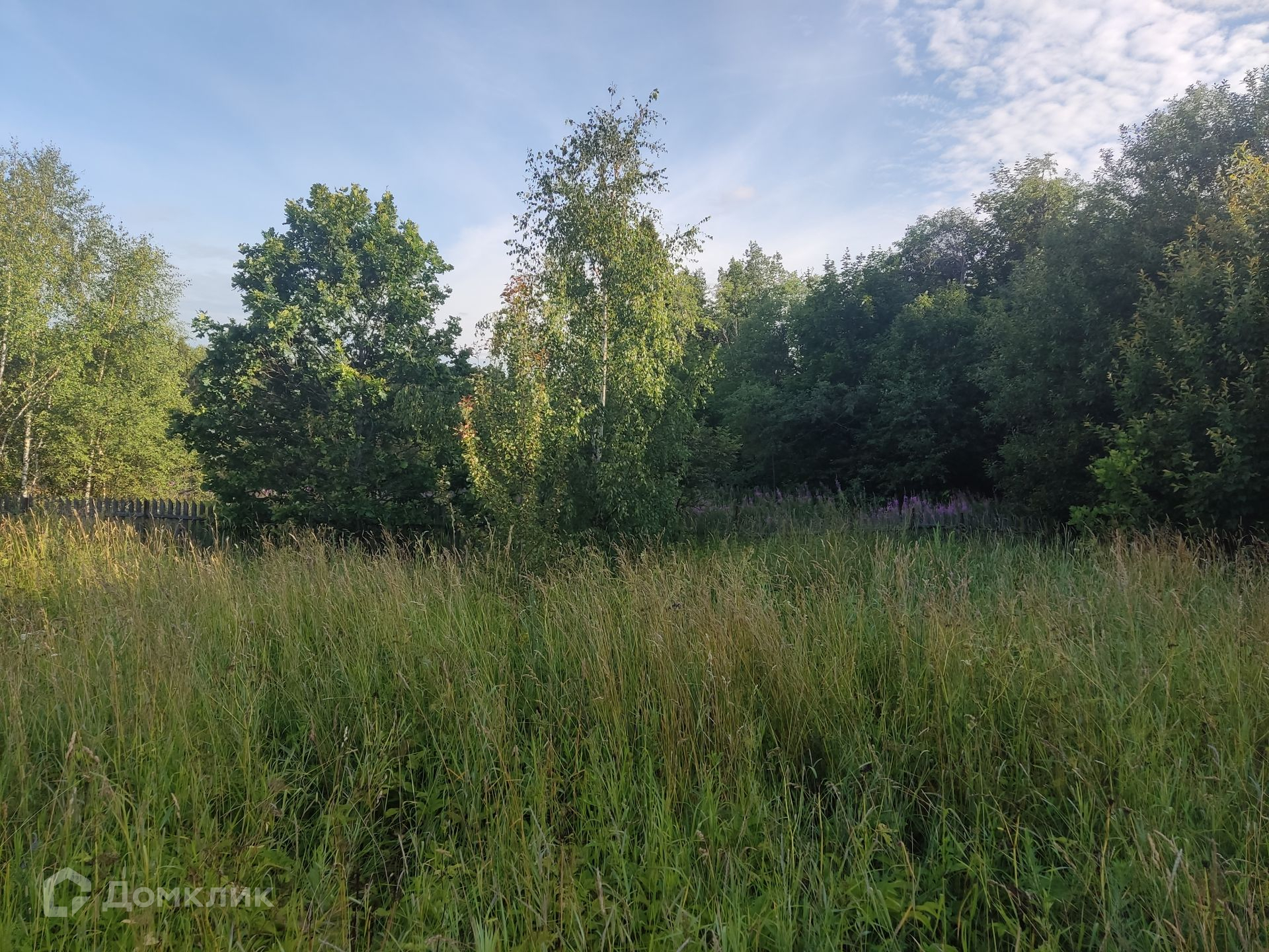 Участок: ровный, сухой, правильной прямоугольной формы, находится на возвышенности, что позволяет построить дом и любоваться панорамным видом на лес и поле, частями огорожен штакетником, ни с кем не граничит. На участке фундамент от сгоревшего дома и сарай (входит в стоимость). Дом 1999 г. постройки с регистрации не снимался (получать разрешение на строительство не нужно).