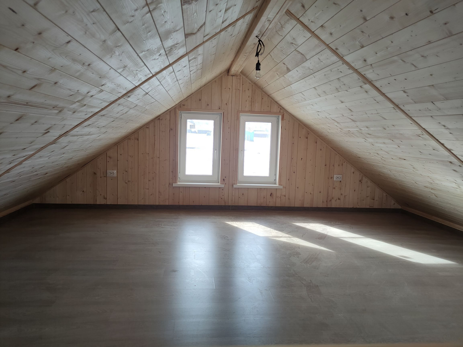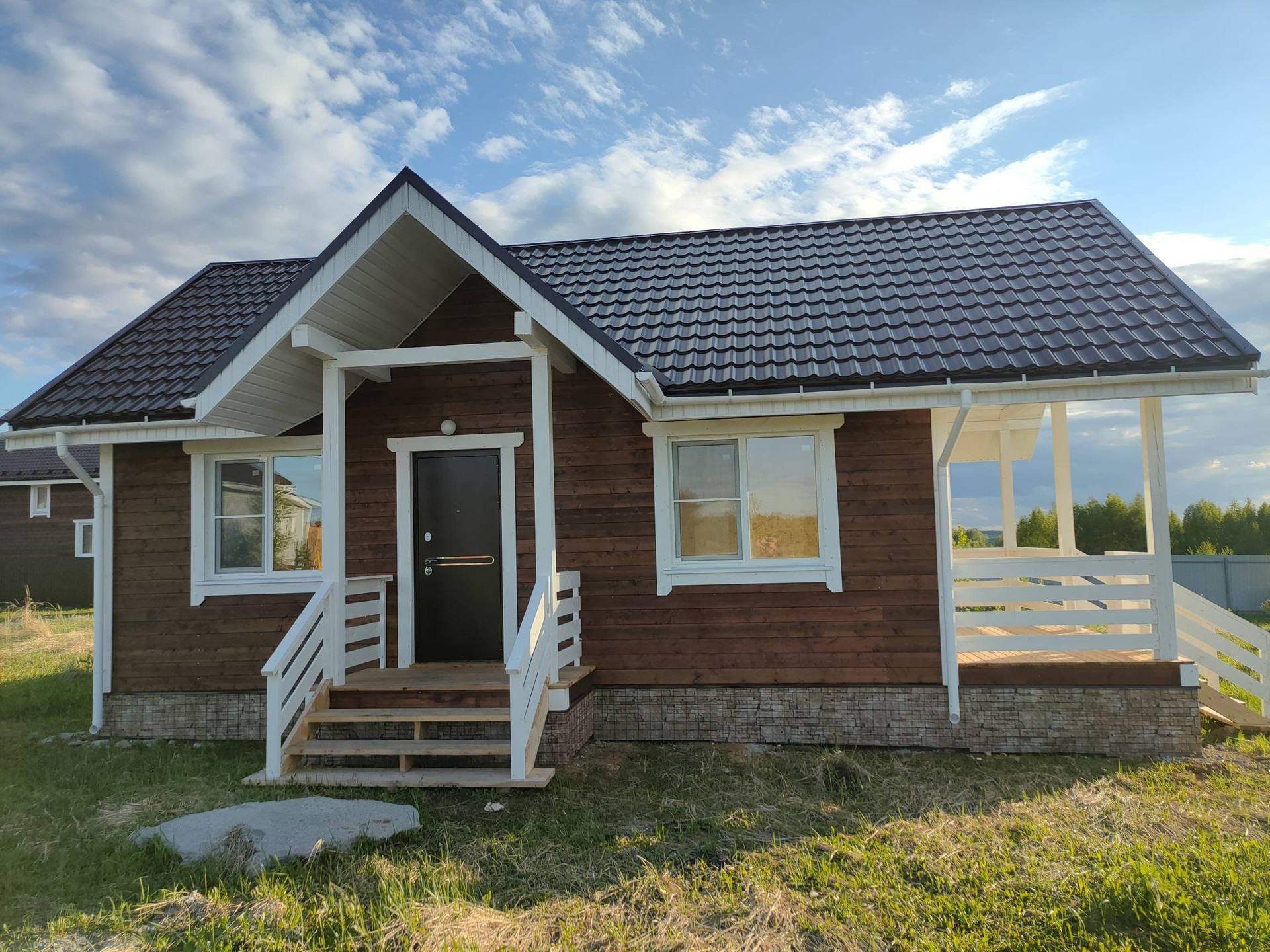 Дом построен по каркасной технологии. Долговечная кровля из металлочерепицы, теплые пластиковые окна, фасад отделан имитацией бруса снаружи и внутри.