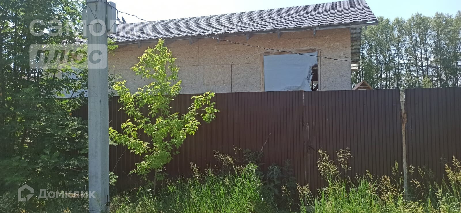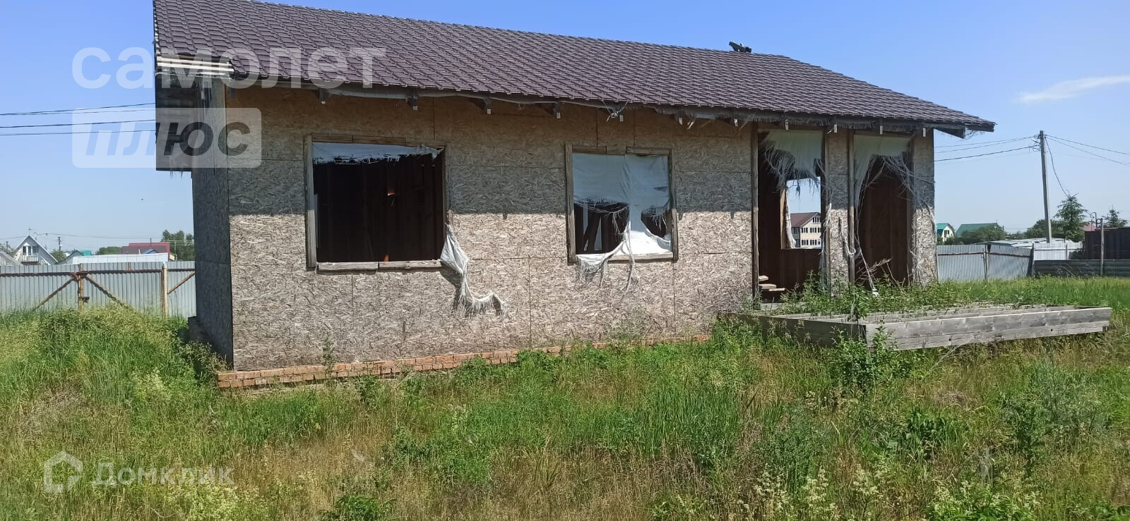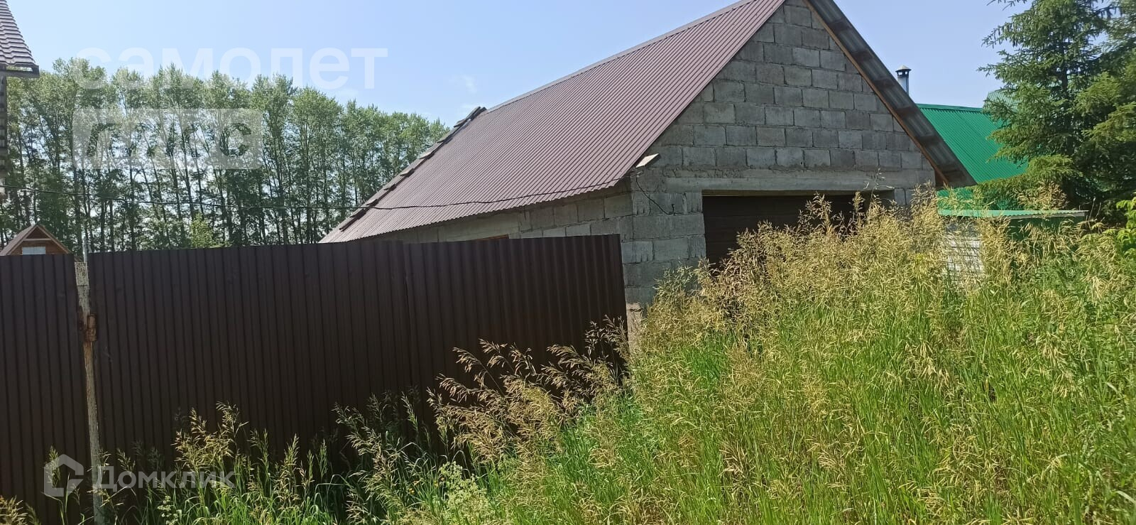 На участке имеется недостроенной дом пот крышей, 10 на 12. Гараж 4 на 6 из шлакоблока. внутри погреб.