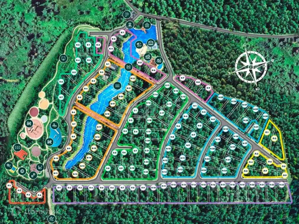 - 3,5 ГА клубной инфраструктуры, в которую входит: Каскад прудов на 1 ГА, банный комплекс, пруд с подогревом на 100 м2, мультиспортивный комплекс, пирс у воды, детский игровой комплекс, песочный пляж, теннисный корт, топиари парк, фитнес клуб, банный чан и Фурако, горки для тюбинга на “ватрушках”, workout зона, беседка BBQ и мангальная зона, площадка для пляжного волейбола, беседка для йоги, мостики для прогулок у воды, батуты, пешеходные дороги, лыжня и тропы для скандинавской ходьбы, экотропа в хвойном лесу, лавочки для отдыха, видеонаблюдение в поселке, гостевая парковка и зона ожидания, охрана 24/7 и патрулирование, огражденная территория и тревожная кнопка.
