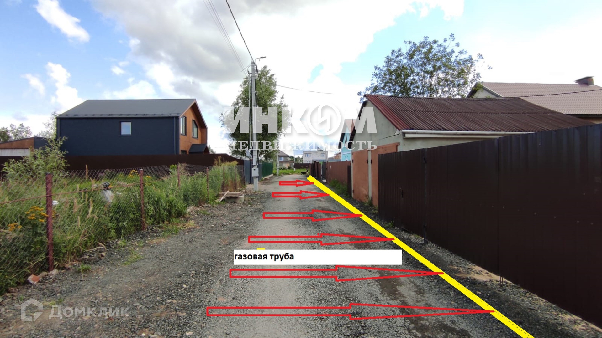 Участок 5соток, прямоугольной формы огорожен забором из профлиста с раздвижными воротами. На участке есть гараж на две машины.