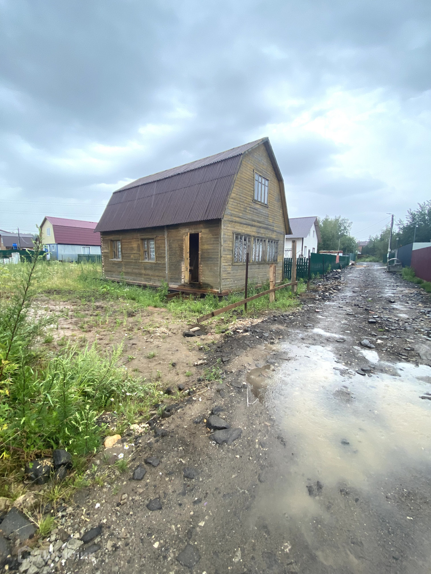 Правильной прямоугольной формы участок на 5 соток. Подключено электричество. На участке есть двухэтажный дом, на 1 этаже расположено6 кухня и две комнаты, а второй этаж свободной планировки.