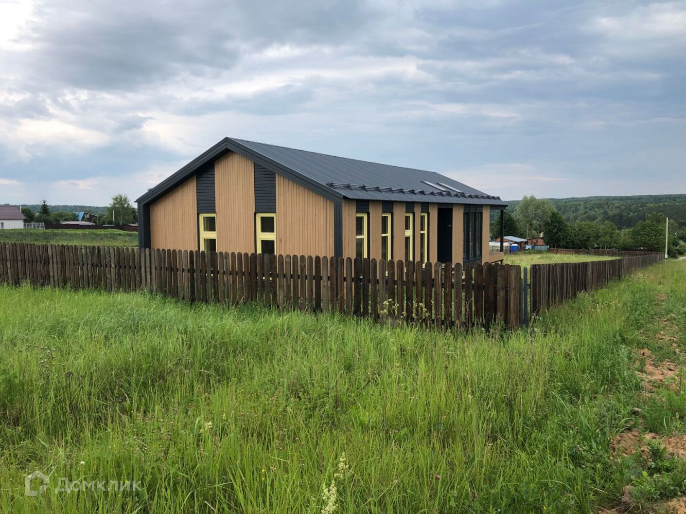 1 этаж - просторная кухня-гостиная, 3 спальни, 2 санузла, гардеробная, котельная. В гостиной панорамные окна в пол + 4 мансардных окна в крыше. Деревянные окна во всех жилых комнатах. Красивый деревянный забор с электрическими воротами, обработан маслом. В доме проведена качественная негорючая электропроводка, во всех помещениях дизайнерские тёплые батареи, проложены трубы из ПВХ. Так как дом находится на возвышенности, из окон открывается прекрасный вид на деревню.