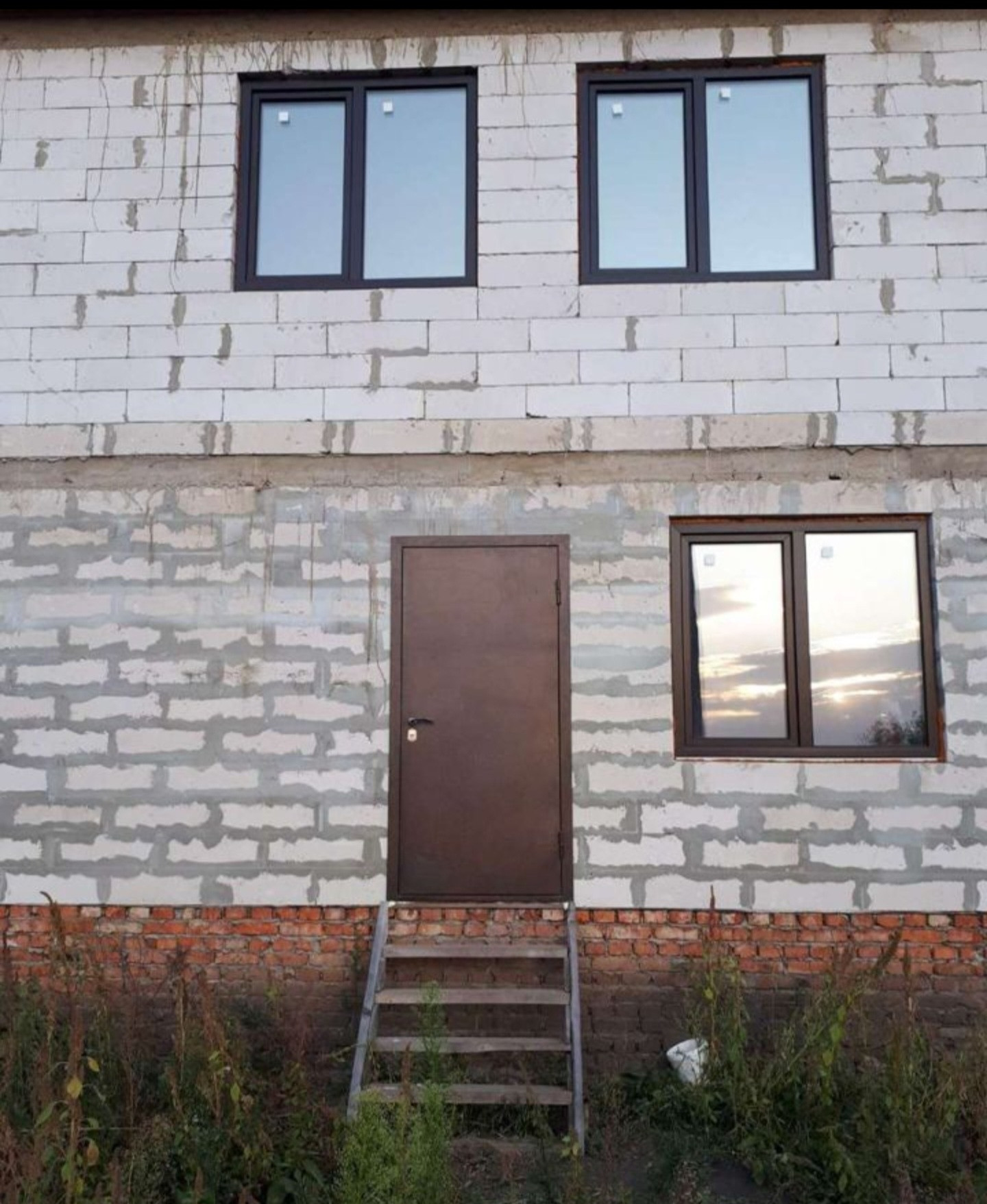 окна: пластиковая, 3 пакета, изнутри белая, снаружи коричневая.