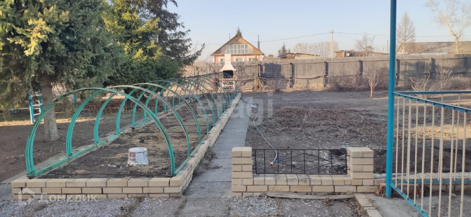 Участок земли ухожен и обустроен: есть летний водопровод, здесь растут многолетние яблони, кусты смородины, жимолости и малины, и есть даже кусочек настоящего хвойного леса с качелями, создающий атмосферу уюта и спокойствия. Для вашего отдыха предусмотрены баня на дровах, просторный гараж, летняя кухня с погребом и барбекю, беседка и качели. Есть вольер для собаки.