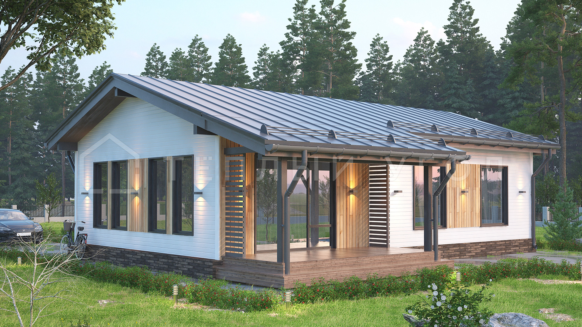 Уютный каркасный дом для семьи, выполненный из экологичных скандинавских материалов, в современном архитектурном стиле предлагается в готовой отделке "под ключ".