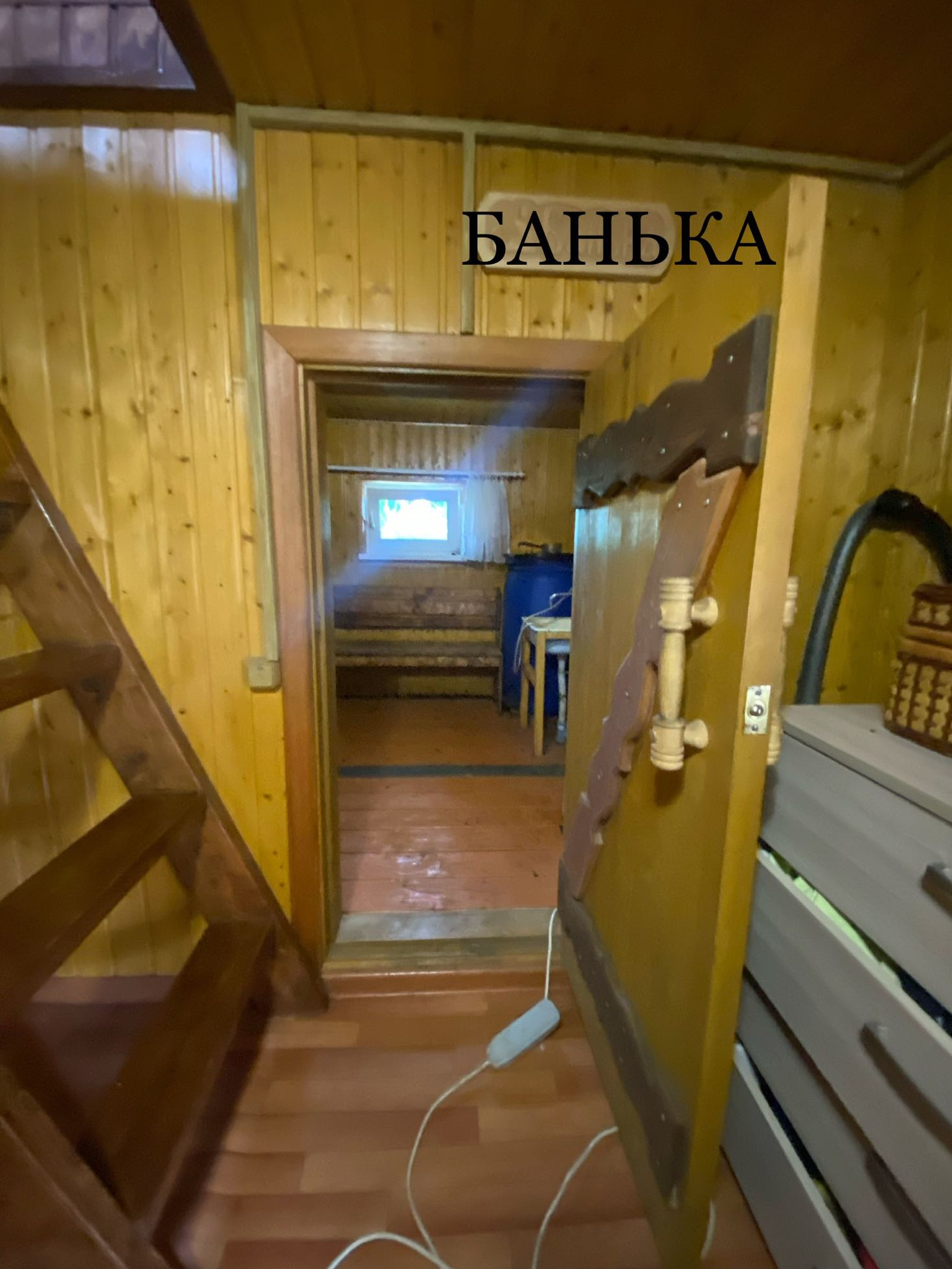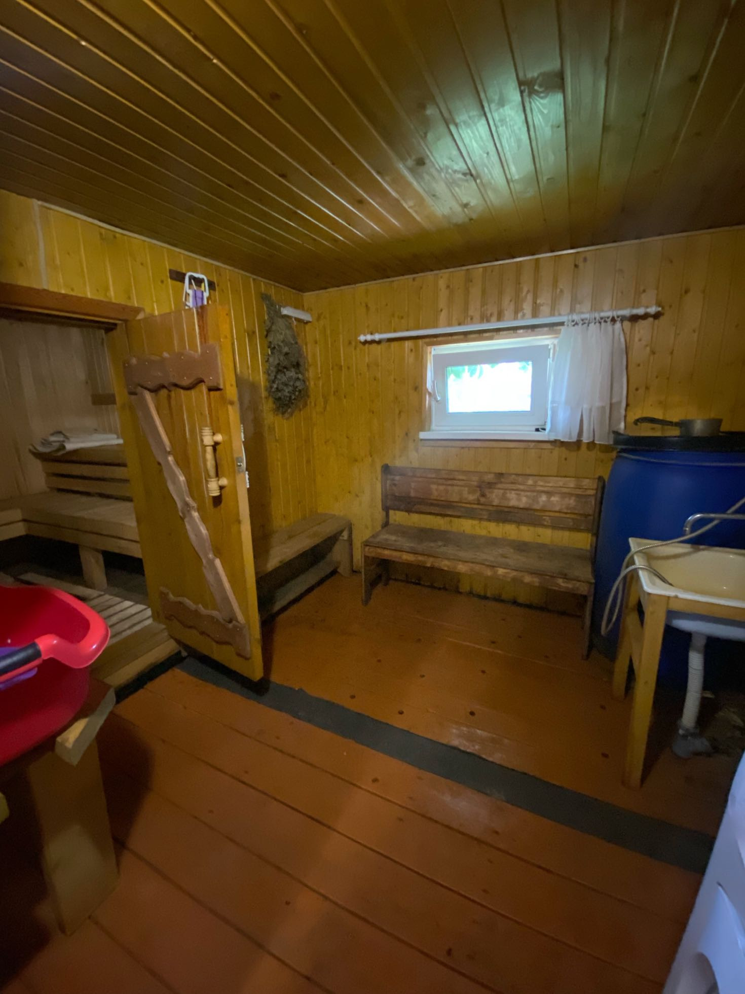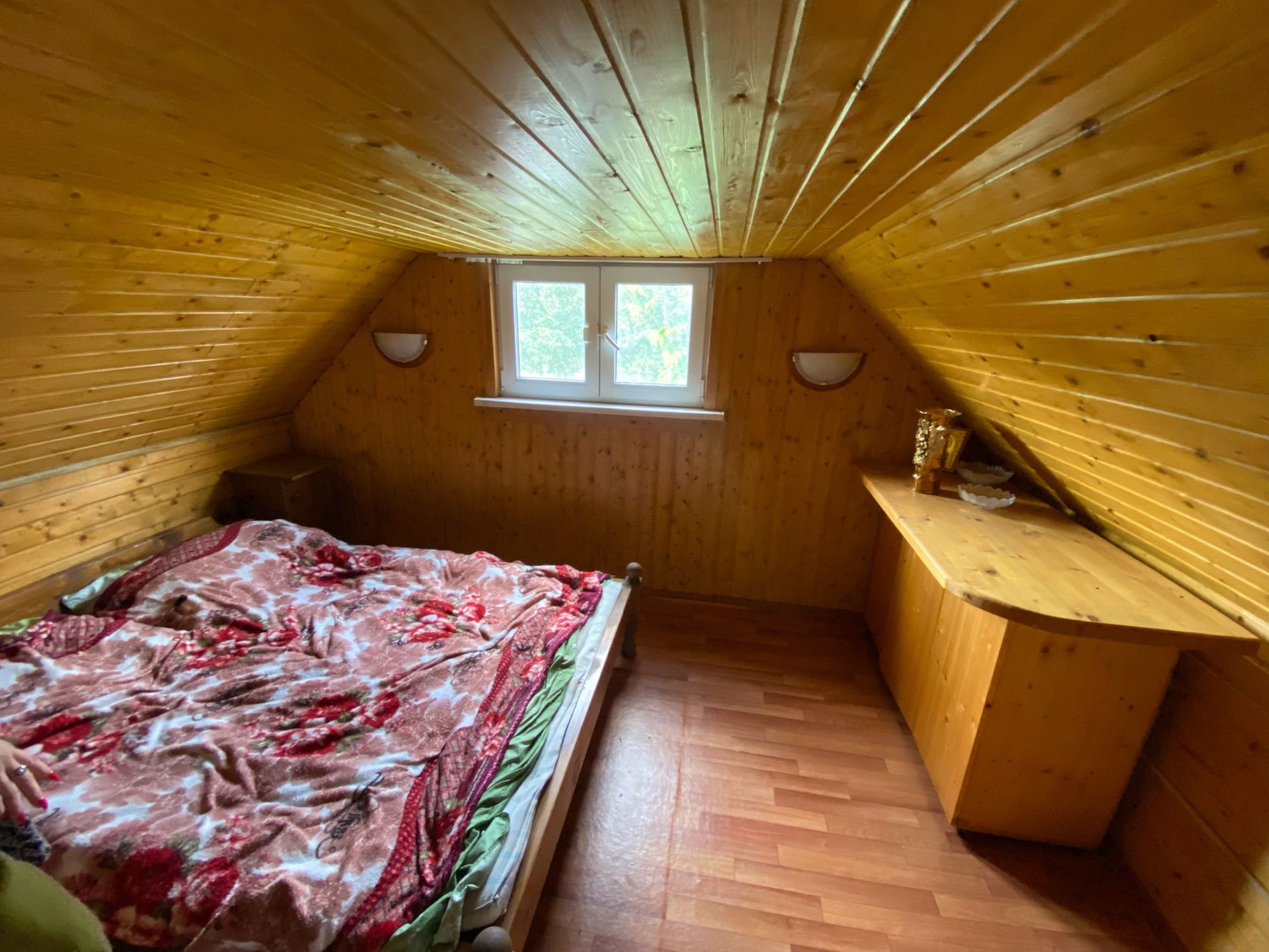 В доме кухня,сауна,комната на первом этаже и комната на втором этаже,чердак,терраса для отдыха