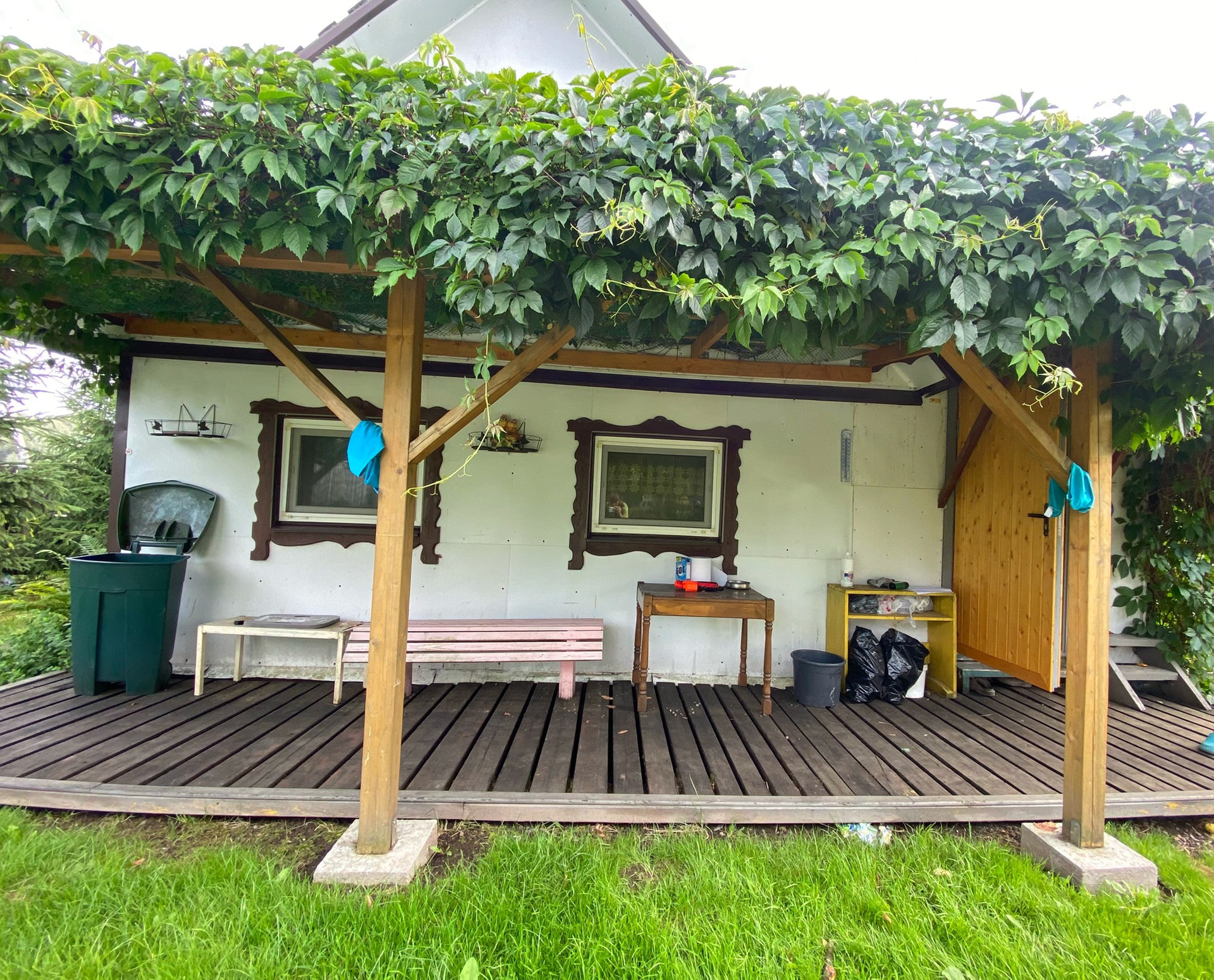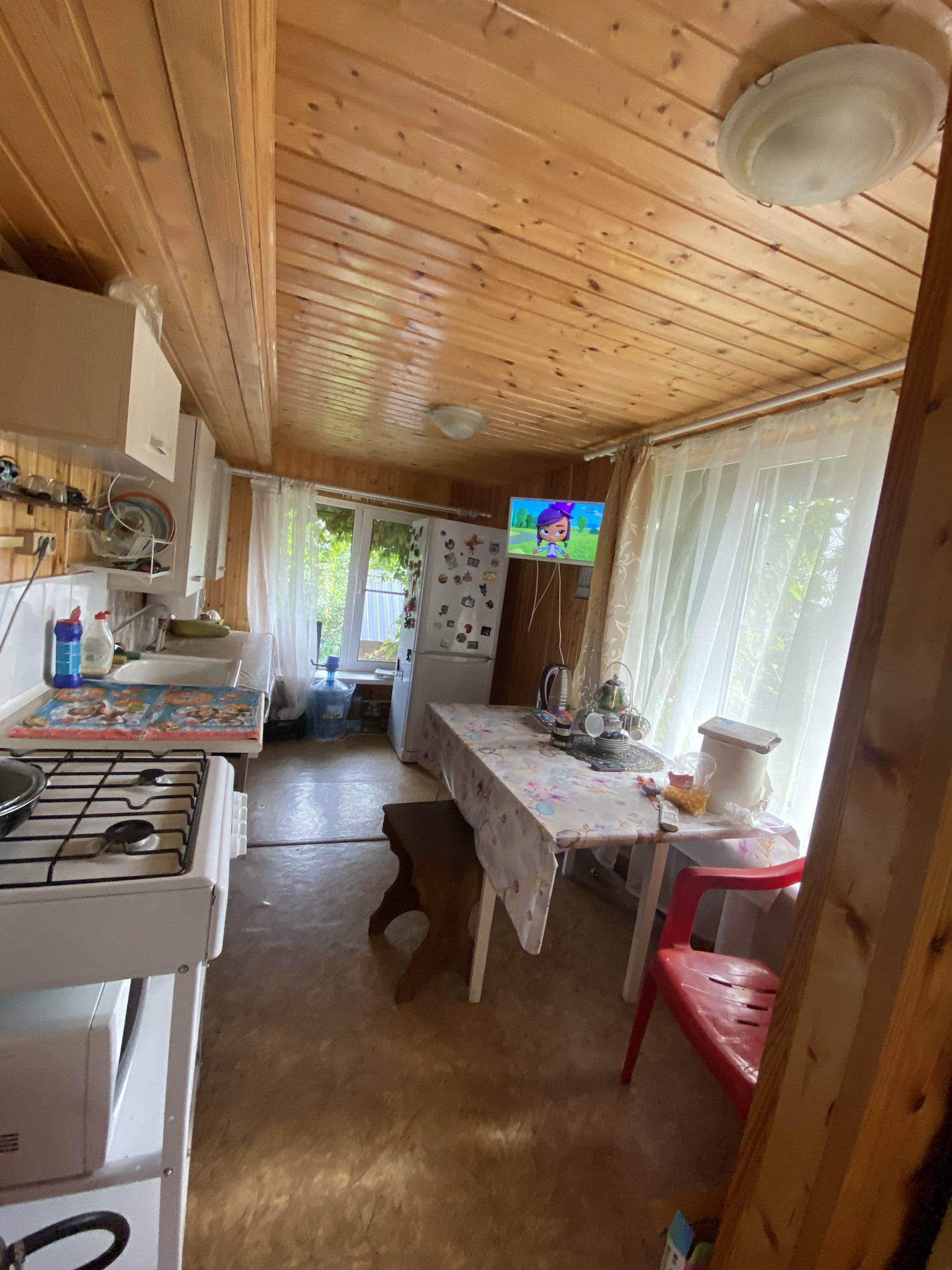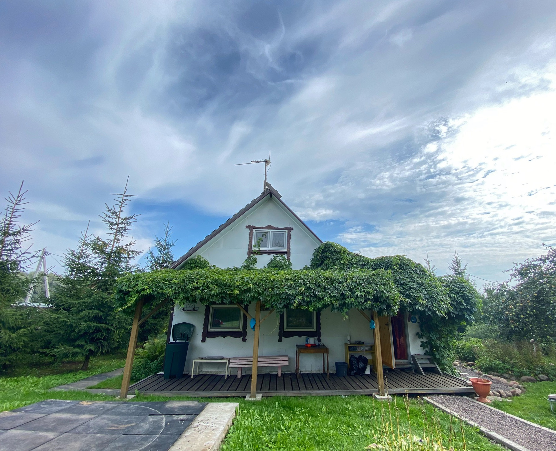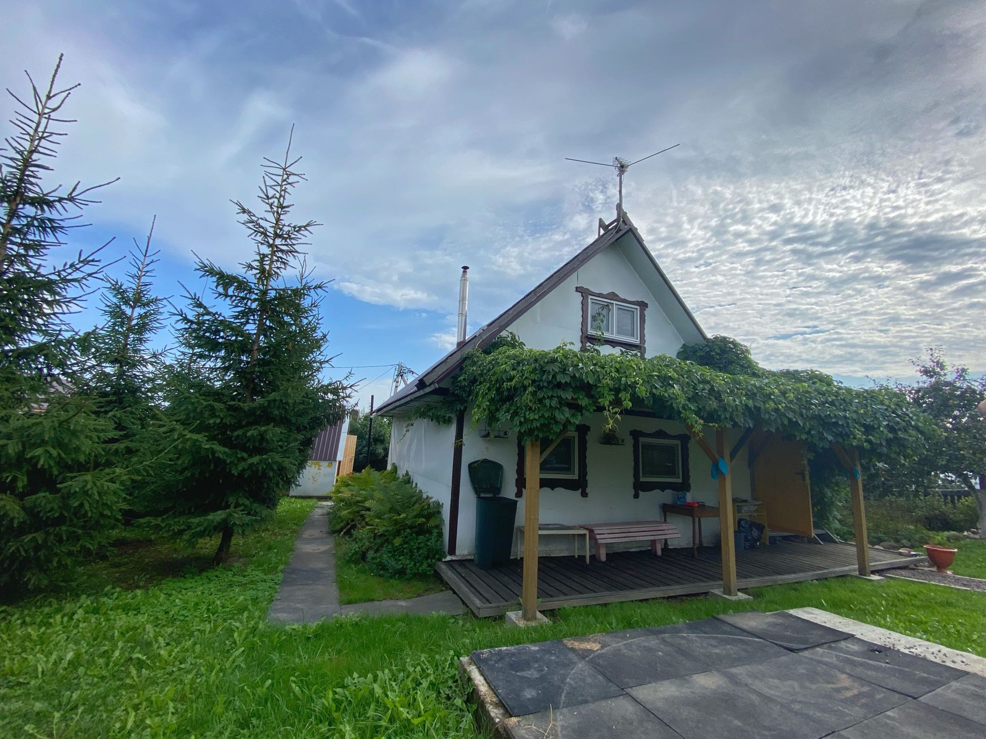 В доме кухня,сауна,комната на первом этаже и комната на втором этаже,чердак,терраса для отдыха