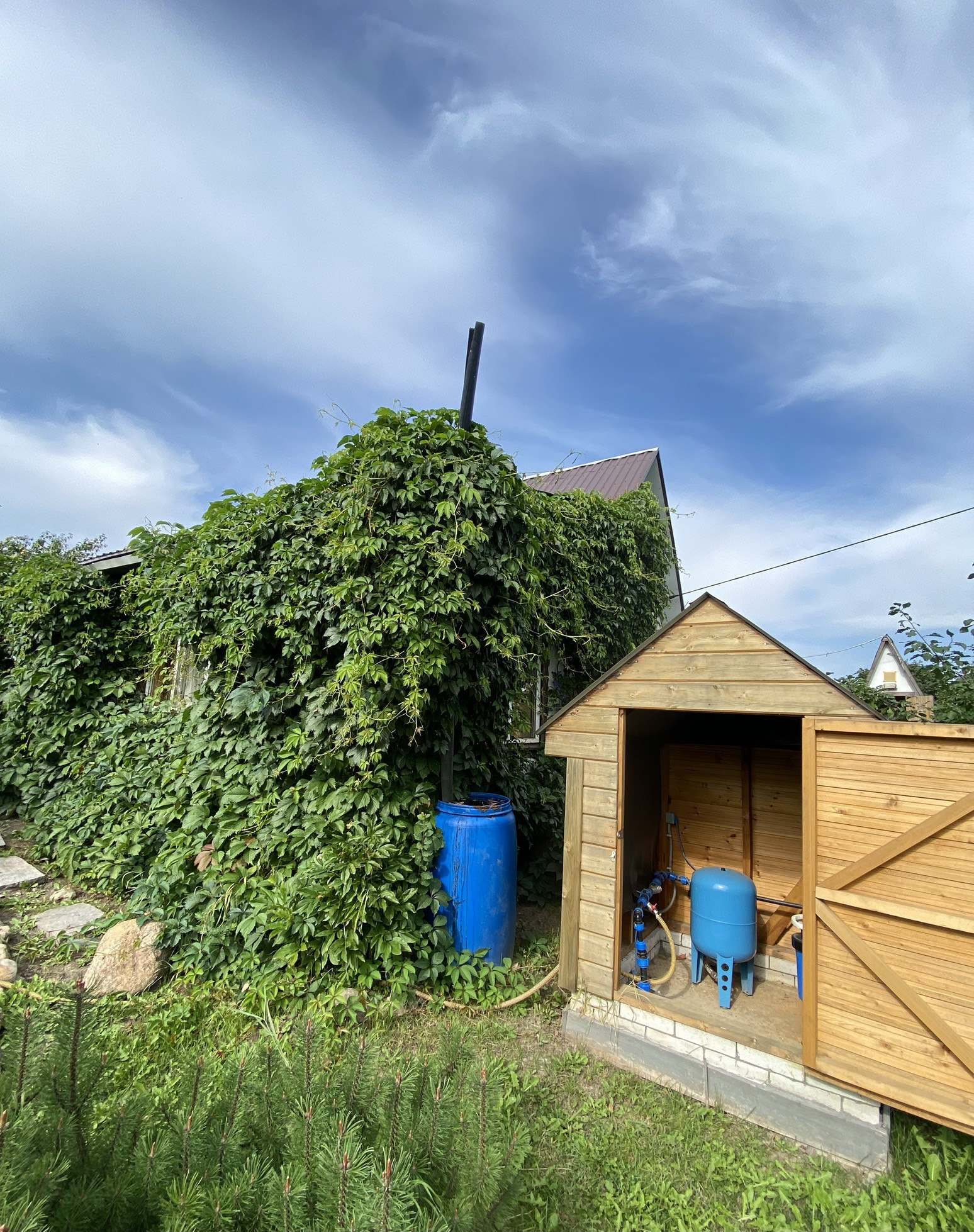 На участке имеются две хоз.постройки,1ая для хранения инвентаря,2ая глубокий подвал из пеноблоков