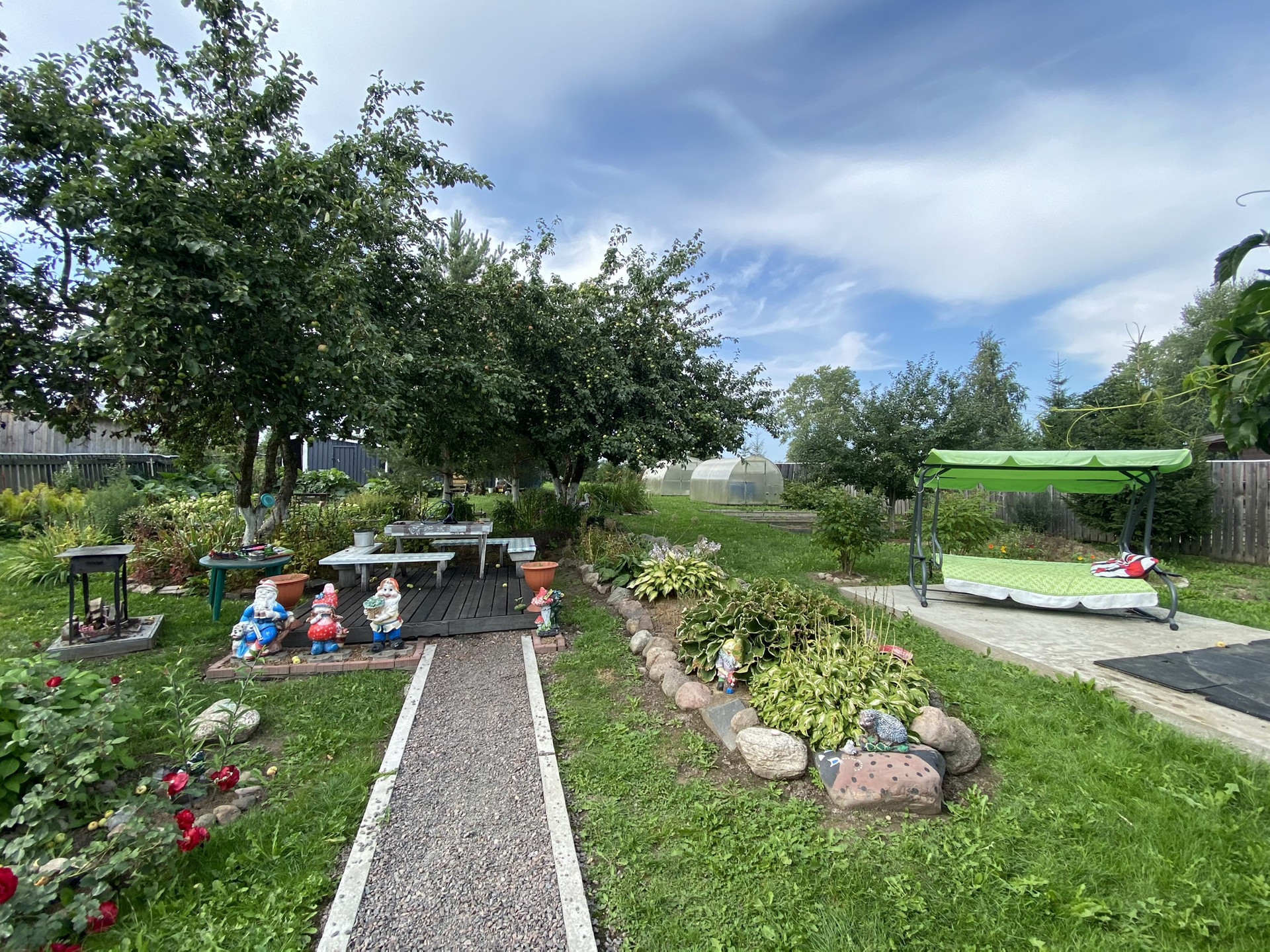 Вся территория огорожена забором,ухожена и облагорожена,имеются плодовые деревья и цветы