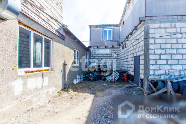 Рядом с домом пристроены два коммерческих помещения. К магазину и автосервису есть выход из дома. Перед помещениями участок асфальтирован.