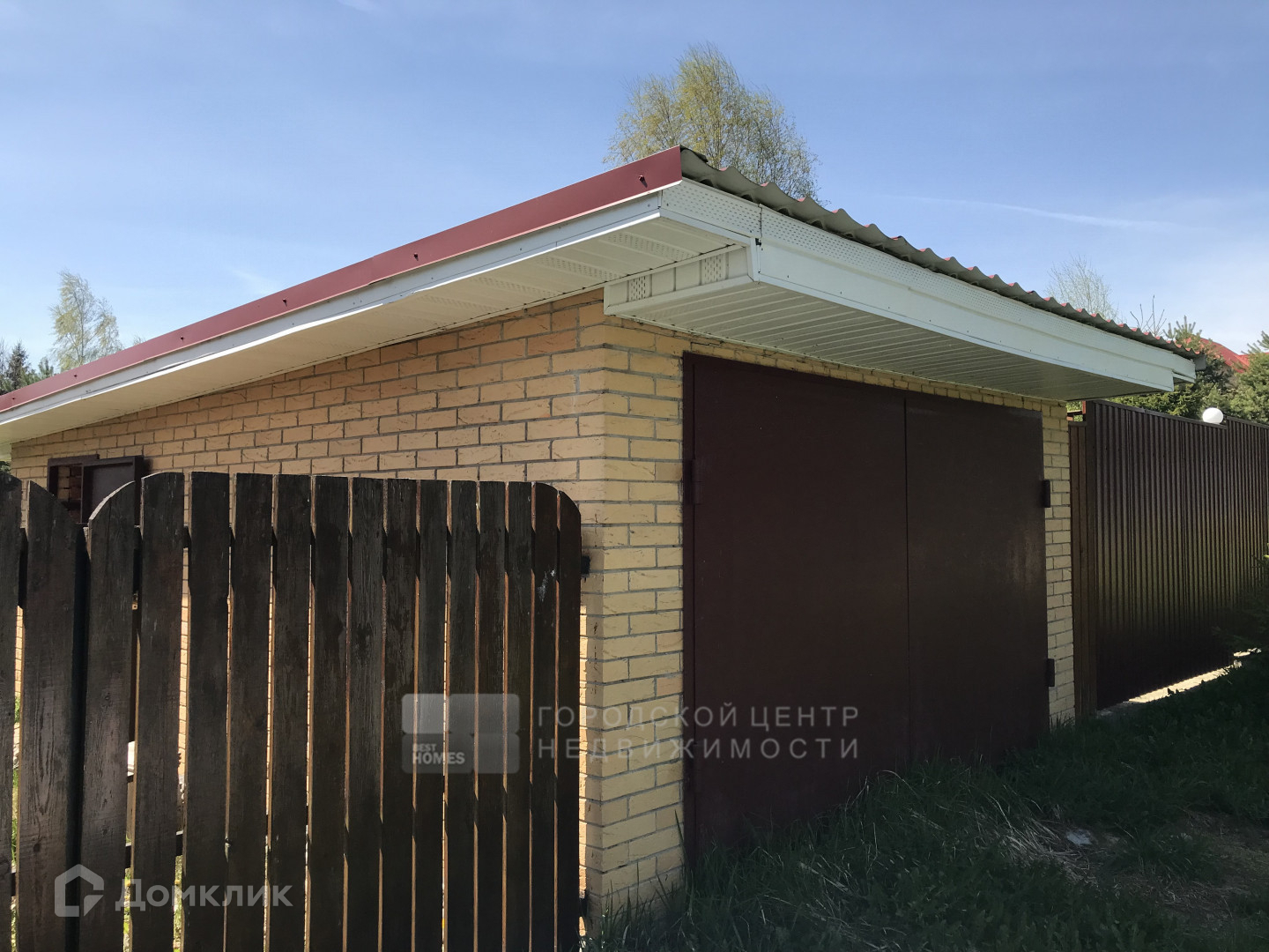 Выровненный участок 15 соток правильной прямоугольной формы. Со всех сторон огорожен забором. По фасаду штакетник и красивые кирпичные столбики. Справа штакетник, слева и сзади сетка-рабица. Обустроены ворота, калитка. На въезде на участок гараж, также обложенный кирпичом.