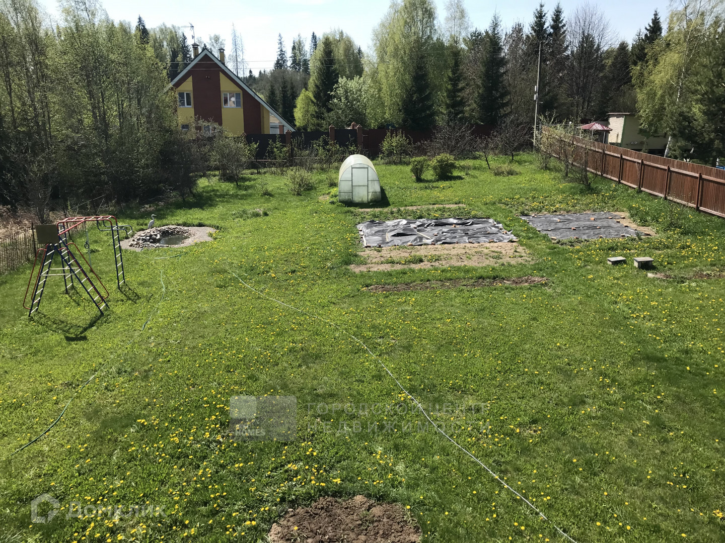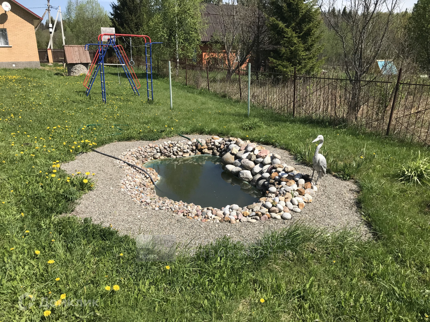 На участке новая теплица, детский спортивны комплекс. Обустроен декоративный пруд, обложенный ракушечником.