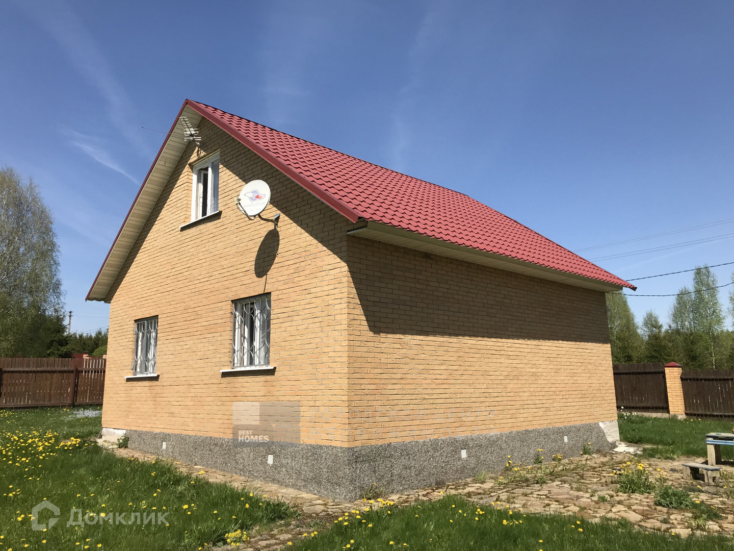 Дом построен в 2010г. из бруса 150Х150мм. Снаружи облицован кирпичом теплого желтого цвета.