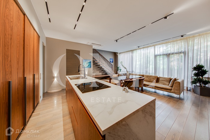 ID 5264 Таунхаус с авторским европейским архитектурным дизайном. В таунхаусе установлены встроенные конвекторы вдоль всех окон и тёплый пол на первом этаже (покрытие керамогранит), второй и третий этажи - паркет ясень. Натуральные материалы отделки, дизайнерский свет, мебель премиальных брендов. Планировка: 1 этаж: прихожая, гостиная с выходом на террасу, кухня с островом, санузел, кабинет-гостевая. 2 этаж: спальня с ванной, большая гардеробная, санузел, мастер-спальня - с душевой 3 этаж : комната свободного назначения (кабинет, спальня или кинотеатр) с выходом на эксплуатируемую кровлю. Посёлок входит в клубную систему Villagio estate - жителям доступна инфраструктура всех посёлков этой группы. На территории ЖК проложены прогулочные дорожки с освещением, уже готова парковая зона с бассейном (будет открыт этим летом) строится школа и садик.