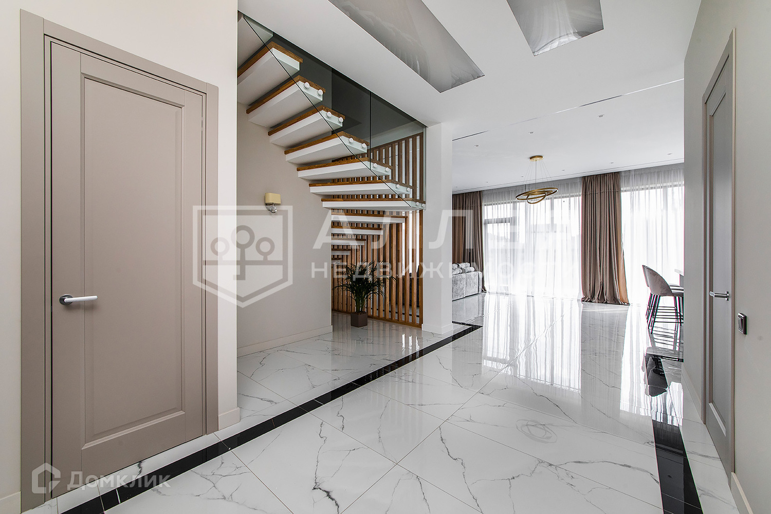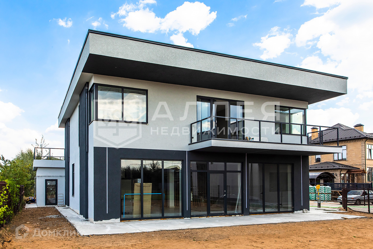 Дом: Новый дом в стиле Hi-Tech. В нем не жили. В доме высокие потолки и панорамное остекление в пол, есть спальня на первом этаже для гостей, родителей или кабинета. В каждой спальне второго этажа отдельная гардеробная и санузел. Дом построен из кирпича с монолитными перекрытиями. Отделка выполнена из современных качественных материалов: на полу итальянский широкоформатный керамогранит и инженерная доска, стены покрашены. Установлены теплые полы и приточно вытяжная вентиляция с системой рекуперации воздуха.