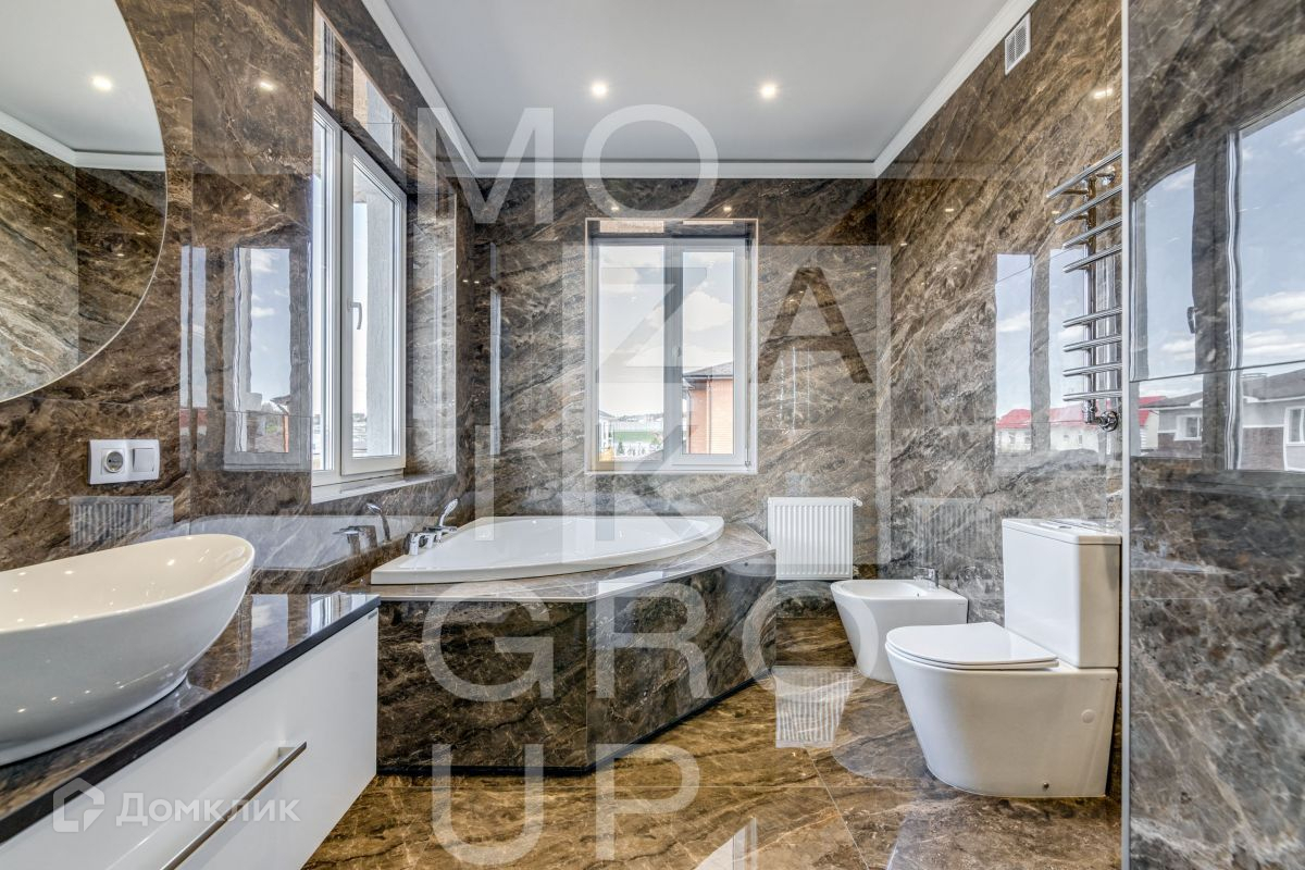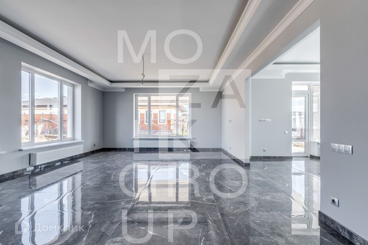 ID 541085. КП Новорижский. Новый дом по выгодной цене с качественной отделкой: красивые санузлы с дорогой европейской сантехникой, на первом этаже полы из изящной плитки с подогревом, на втором этаже паркетная доска, дорогие обои, потолки из гипсокартона, хороший просторный участок, вид на который открывается с летней террасы. Перед домом есть место для парковки 3-х автомобилей. Планировка: 1 этаж: гостиная, кухня-столовая с выходом на летнее патио, котельная, постирочная, гостевой санузел, комната свободного назначения. 2 этаж: мастер-спальня с санузлом и гардеробной, 2 детские спальни с санузлом.Номер объекта: #150/541085/13364