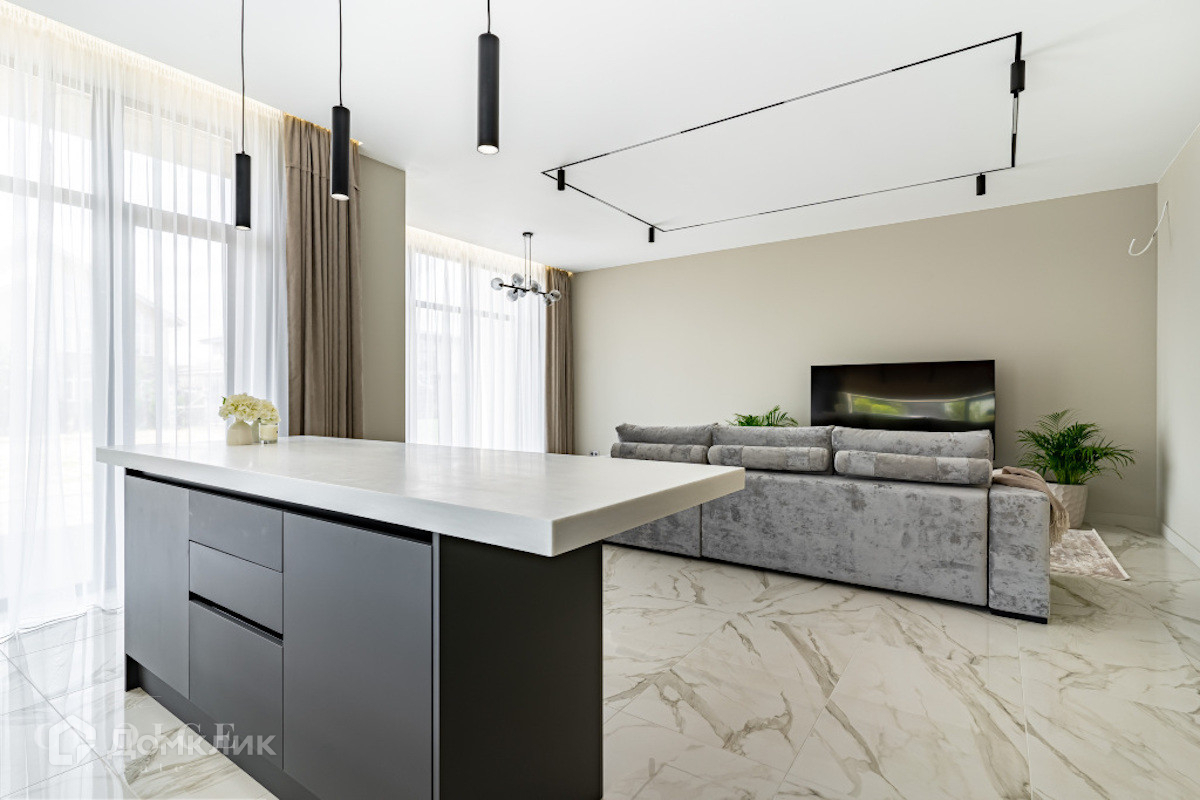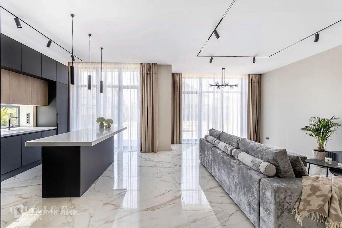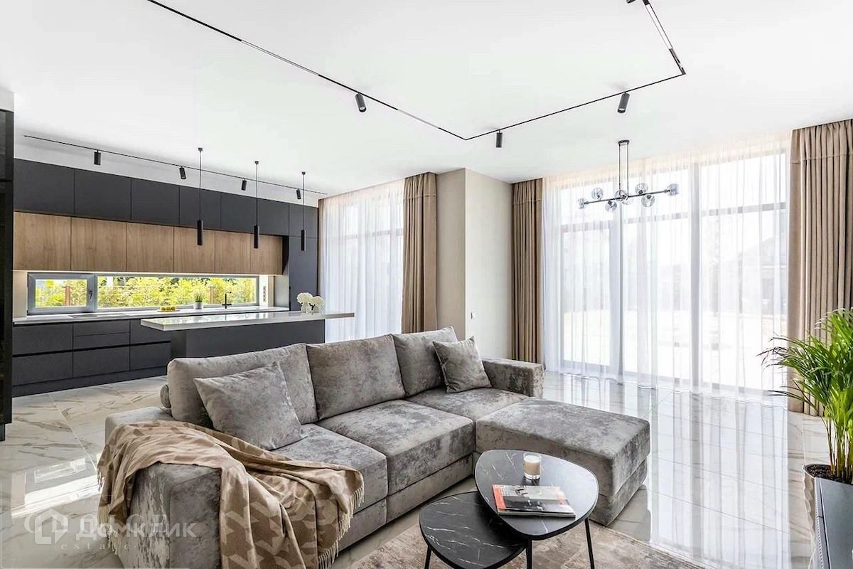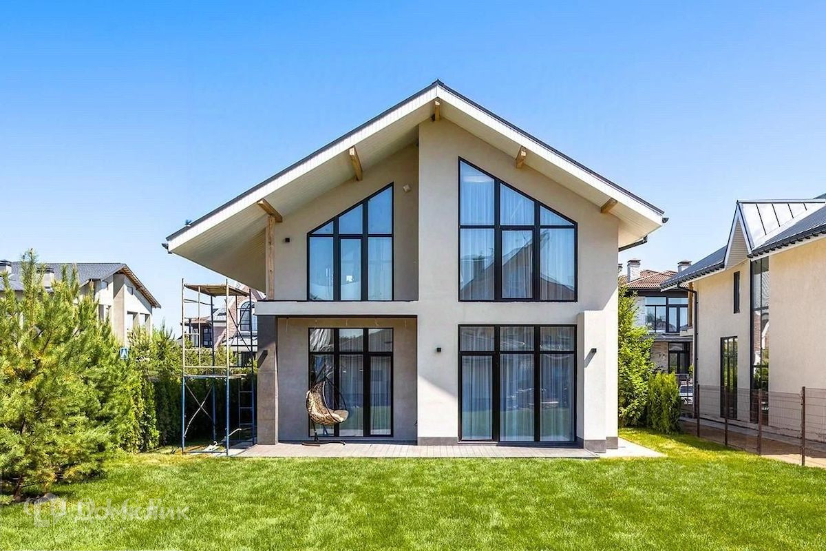 Новый загородный дом в современном стиле площадью 280 м2 построен на полевом участке площадью 7,5 соток в охраняемом КП "Новорижский". В доме спланировали 4 спальни со своими гардеробными и санузлами, кабинет (дополнительная спальня), сауну, а также общее пространство гостиной-кухни-столовой с выходом на террасу. На участке выполнен ландшафтный дизайн, высажены кустарники, газон, установлено уличное освещение.