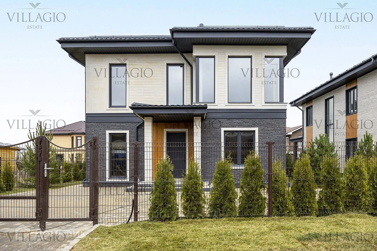 Двухэтажный дом в современном стиле Двухэтажный дом под ключ площадью 240 м2, расположенный в коттеджном поселке «Новорижский». В доме есть все необходимое для вашего комфорта. На двух этажах здесь расположены три ванные комнаты и четыре спальни. Также в доме есть терраса и кабинет, где вы сможете расслабиться и провести время с пользой. Дом расположен в центре поселка на участке площадью 5,52 сотки. Отделка дома выполнена в соответствии с высокими стандартами качества, и вы можете быть уверены в его превосходном исполнении. Поселок «Новорижский» находится всего в 23 км от МКАД и предлагает ряд преимуществ, включая круглосуточную охрану, вывоз мусора, электричество, центральную канализацию и водоснабжение.
