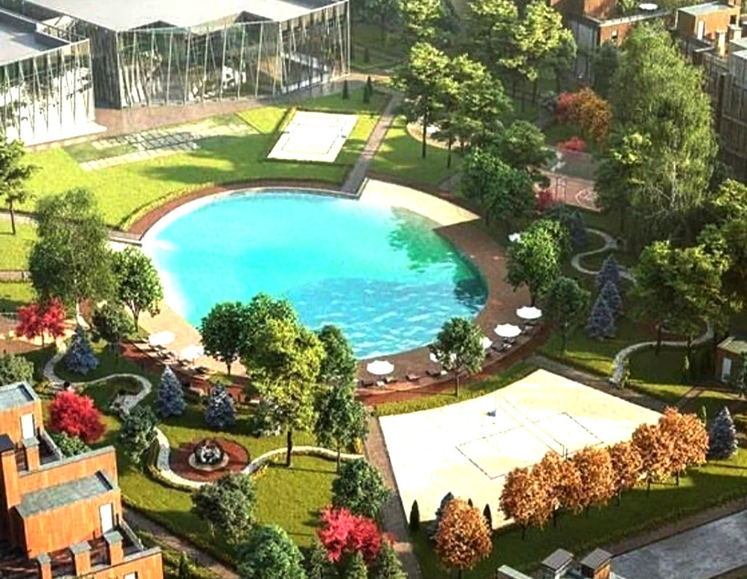 На территории Футуро Парка будет расположен бассейн, ресторан, начальная школа и детский сад, гостевая парковка.