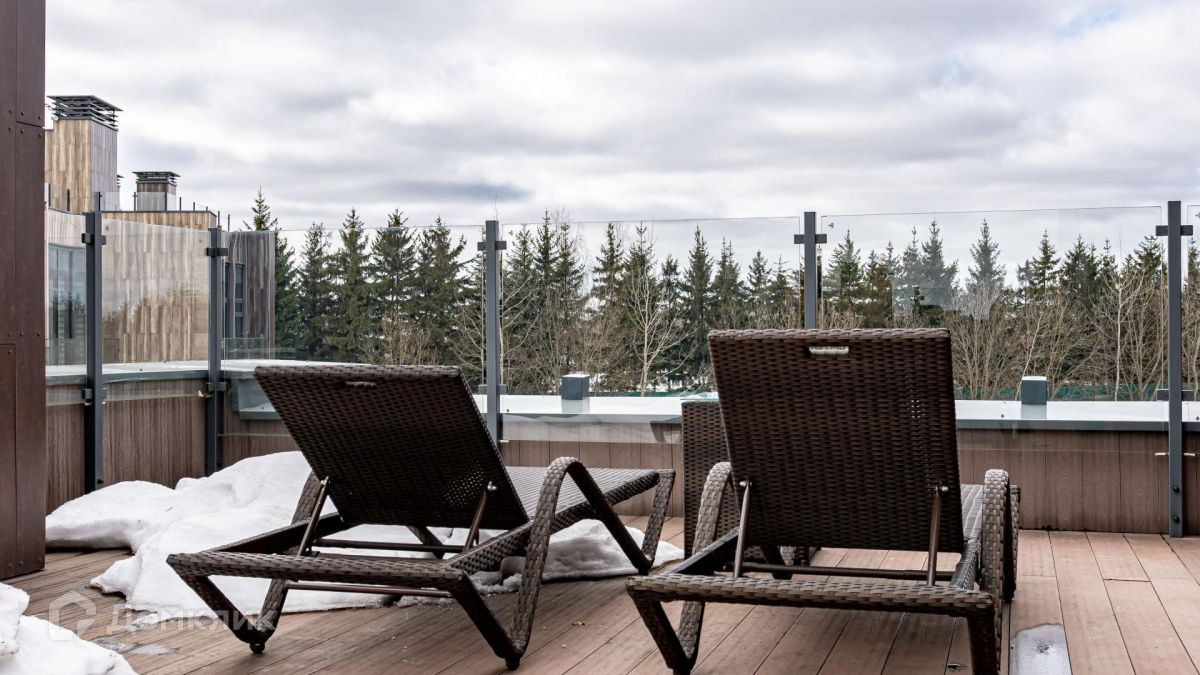 На эксплуатируемой кровле организована превосходная зона для отдыха на свежем воздухе с мебелью, итальянскими шезлонгами, а также душем с холодной и горячей водой. С крыши открывается впечатляющий вид на "Агаларов".