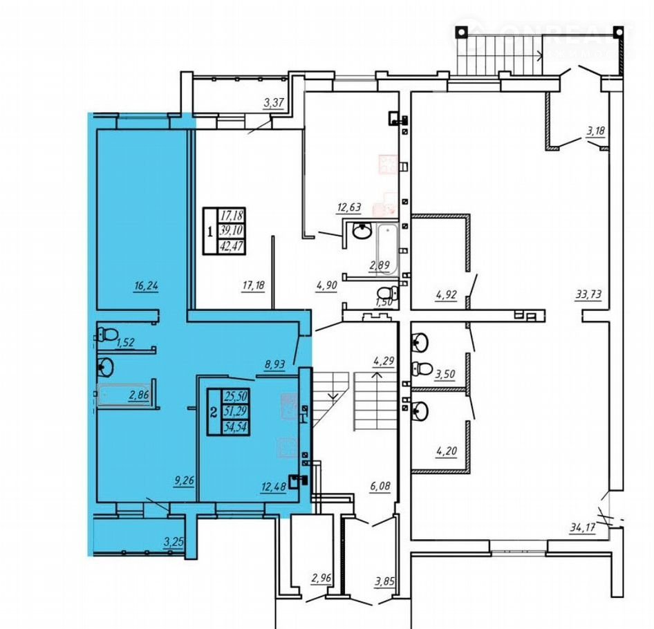 Общая площадь 52.9 м2